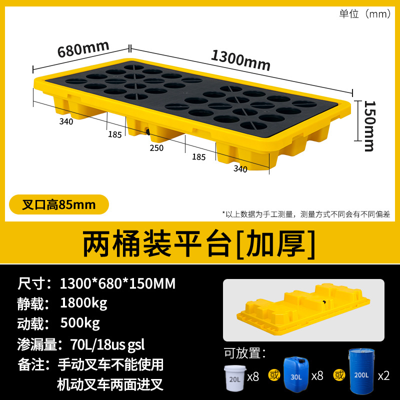 • 130*68*15cm 2배럴 플랫폼은 매우 두껍고 지게차로 운반할 수 없습니다.