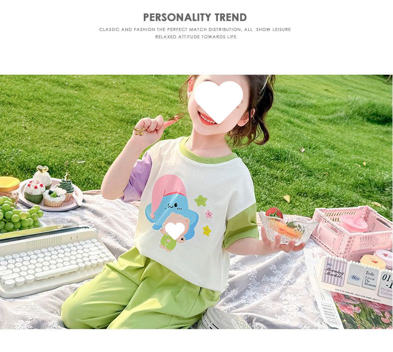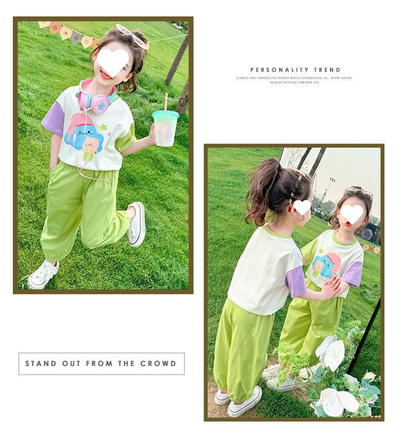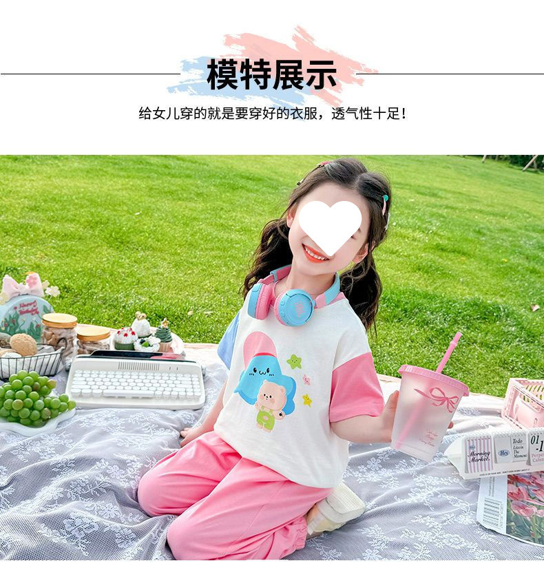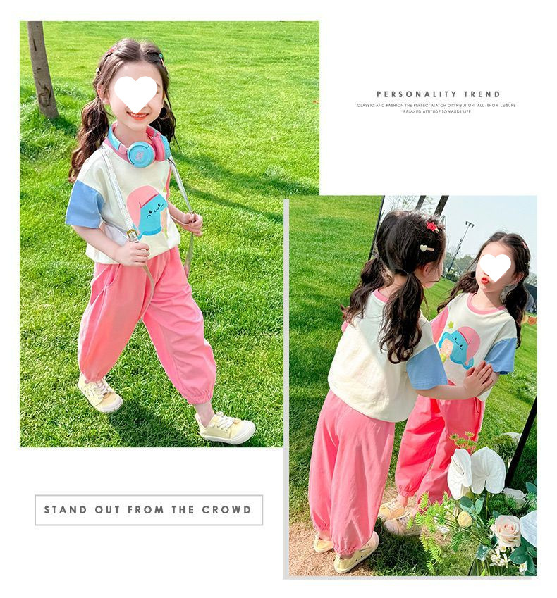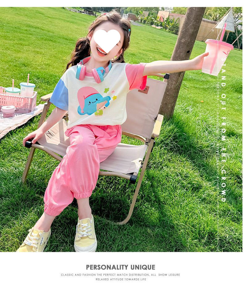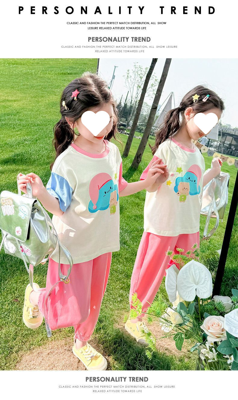 Cuhk 어린이 면화 여름 2025 새로운 소녀 짧은 소매 세트 소녀 학생 귀여운 컬러 매칭 여름 투피스 세트스토어 가기
