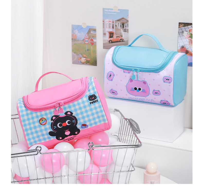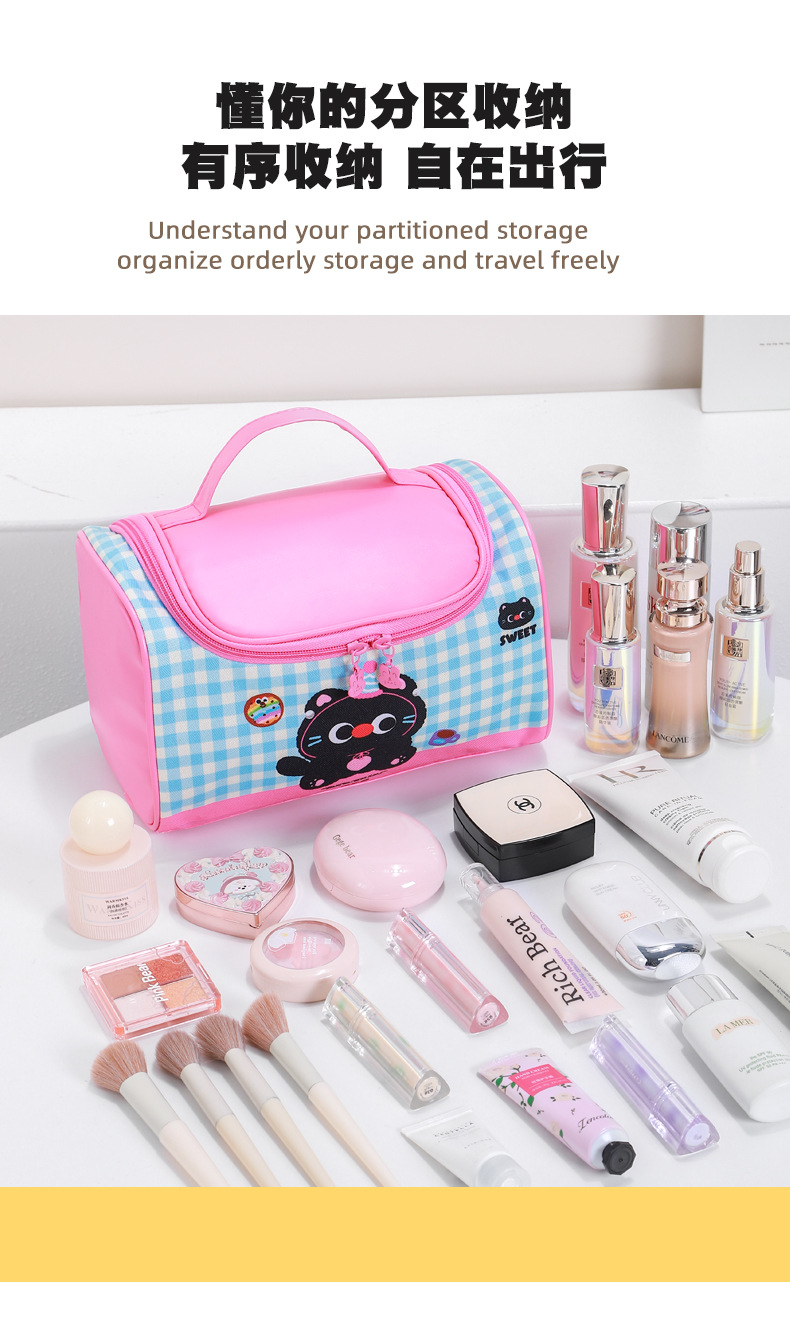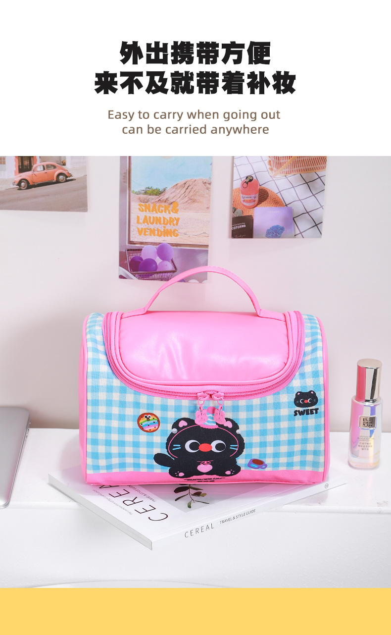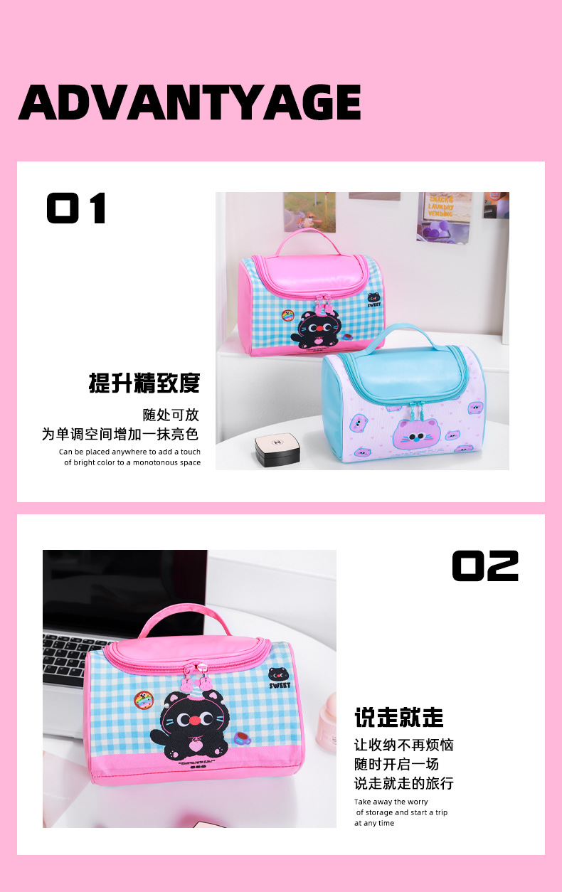 귀여운 팬더 PU 방수 휴대용 세면도구 가방 대용량 분할형 입체 수납 가방 여행용 휴대용 화장품 가방스토어 가기