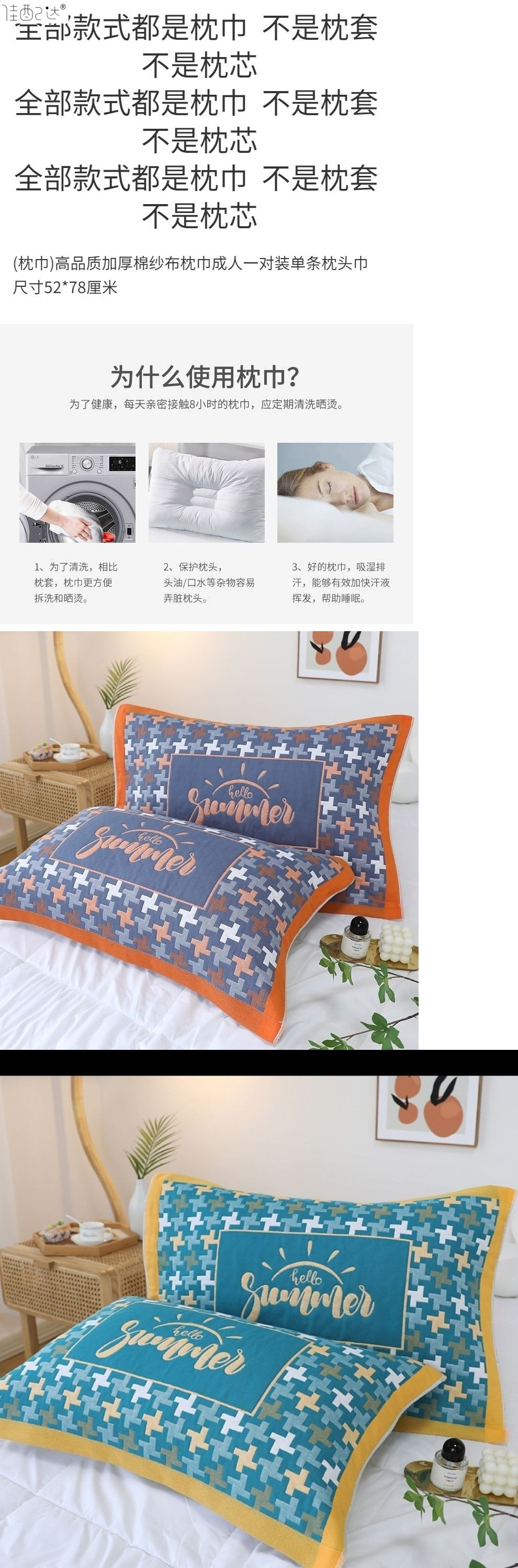 남성과 여성 커플 어린이를위한 베개 수건 가정용 쌍 간단한 민족 스타일 4 층 거즈스토어 가기