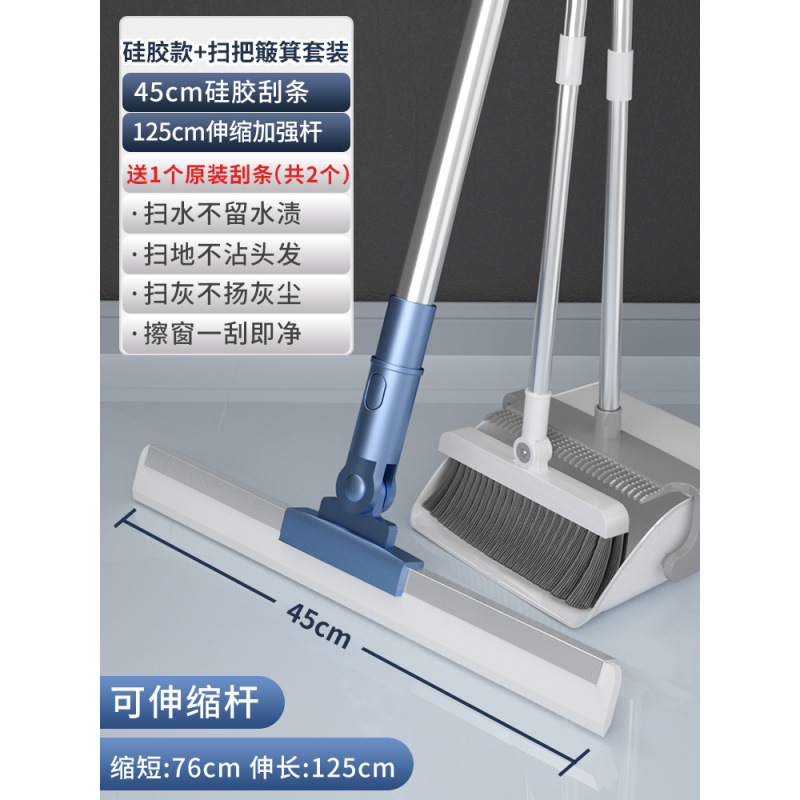 • 45CM 새롭게 업그레이드된 실리콘 + 빗자루 및 쓰레받기 세트(교체용 실리콘 스크레이퍼 포함)