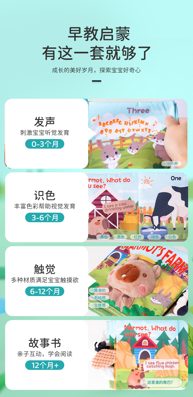 3 차원 꼬리 천 책 아기는 아기 조기 교육 기관 터치 북 장난감을 찢기 위해 입구에서 씹을 수 있습니다.스토어 가기
