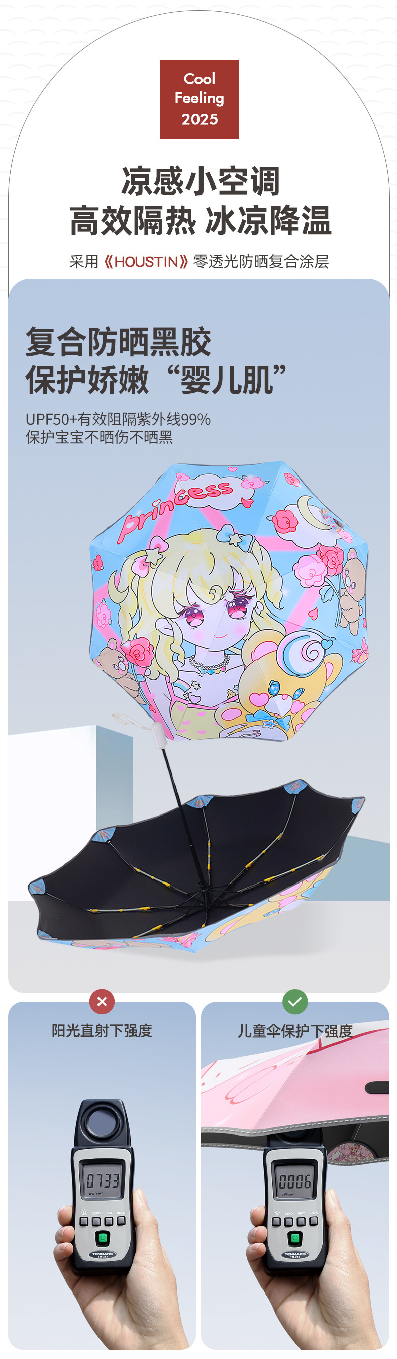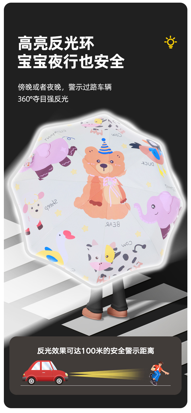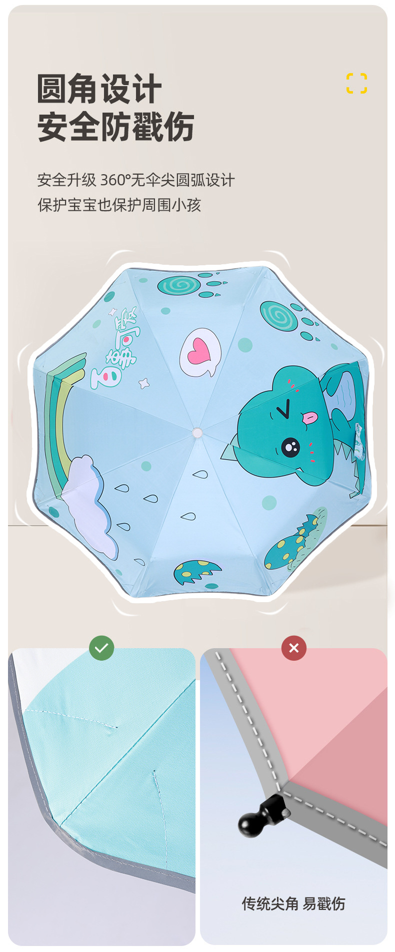 접는 자동 우산 안전 반동 방지 어린이 우산 초등학교 학교 특수 반짝 검은 고무 태양 보호 써니 우산