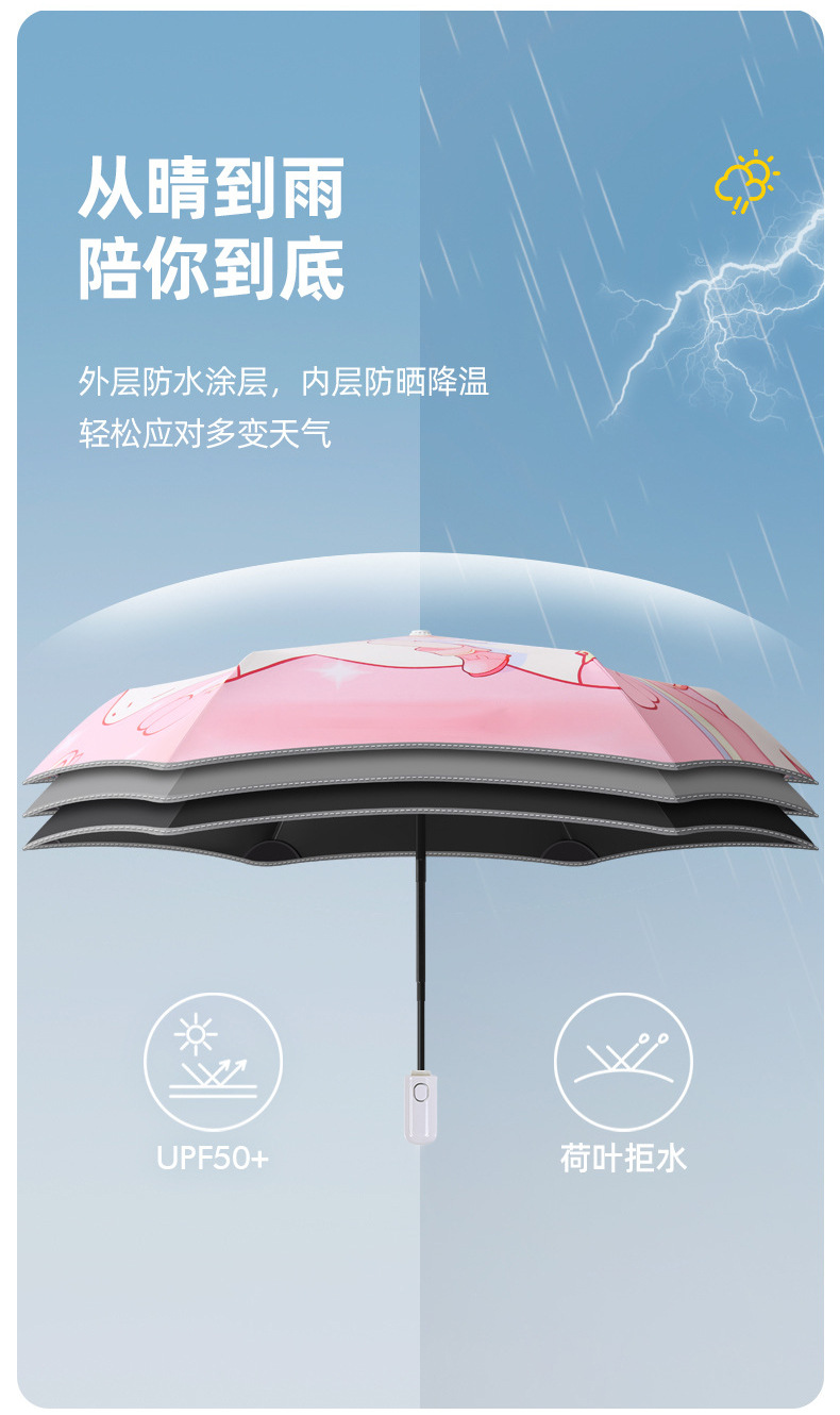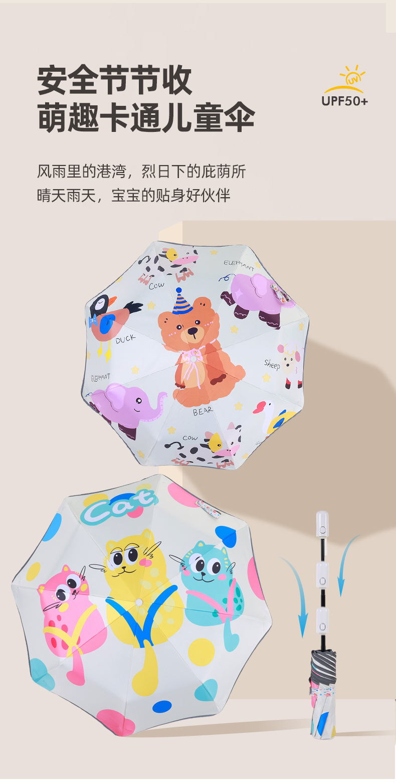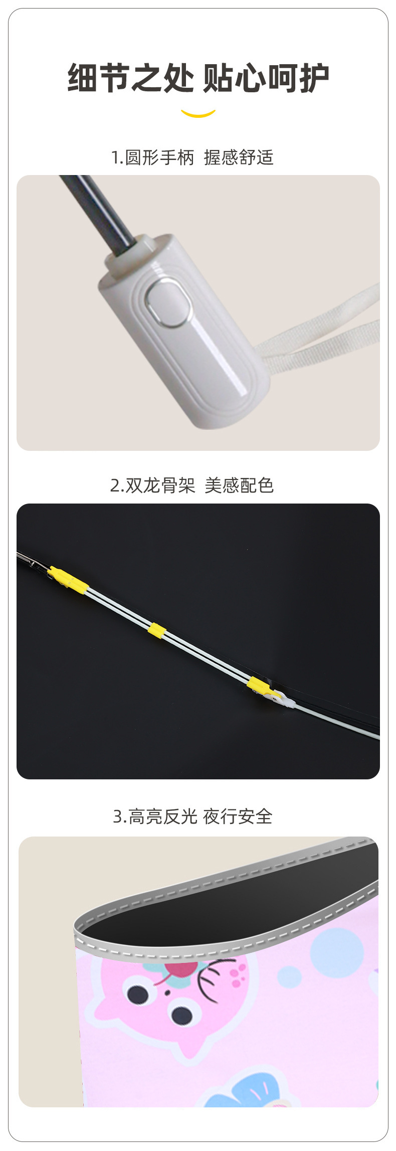 접는 자동 우산 안전 반동 방지 어린이 우산 초등학교 학교 특수 반짝 검은 고무 태양 보호 써니 우산스토어 가기