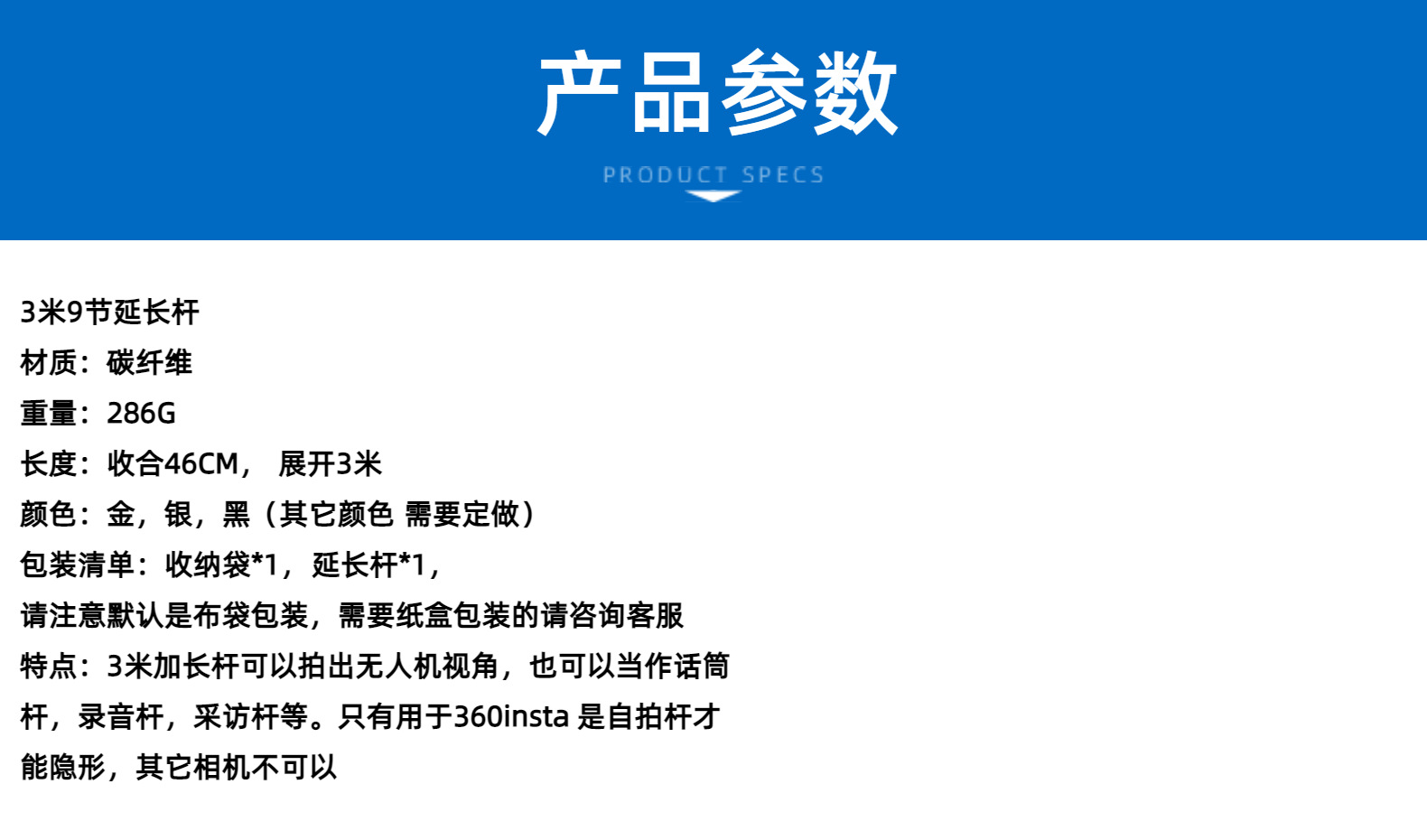 3 m 탄소 섬유 셀카 스틱 타고 스키 vlog 그림자 돌 360x 3/4 파노라마 스포츠 카메라 항공 사진 확장 스틱스토어 가기