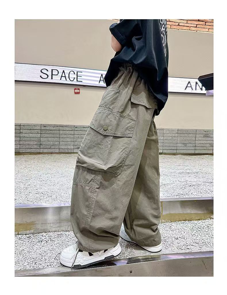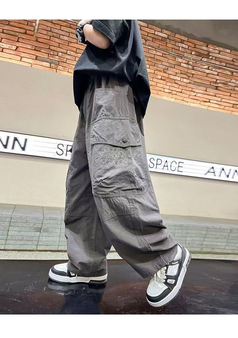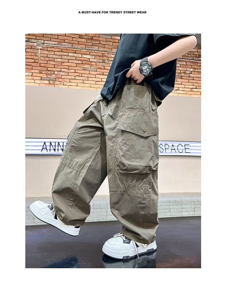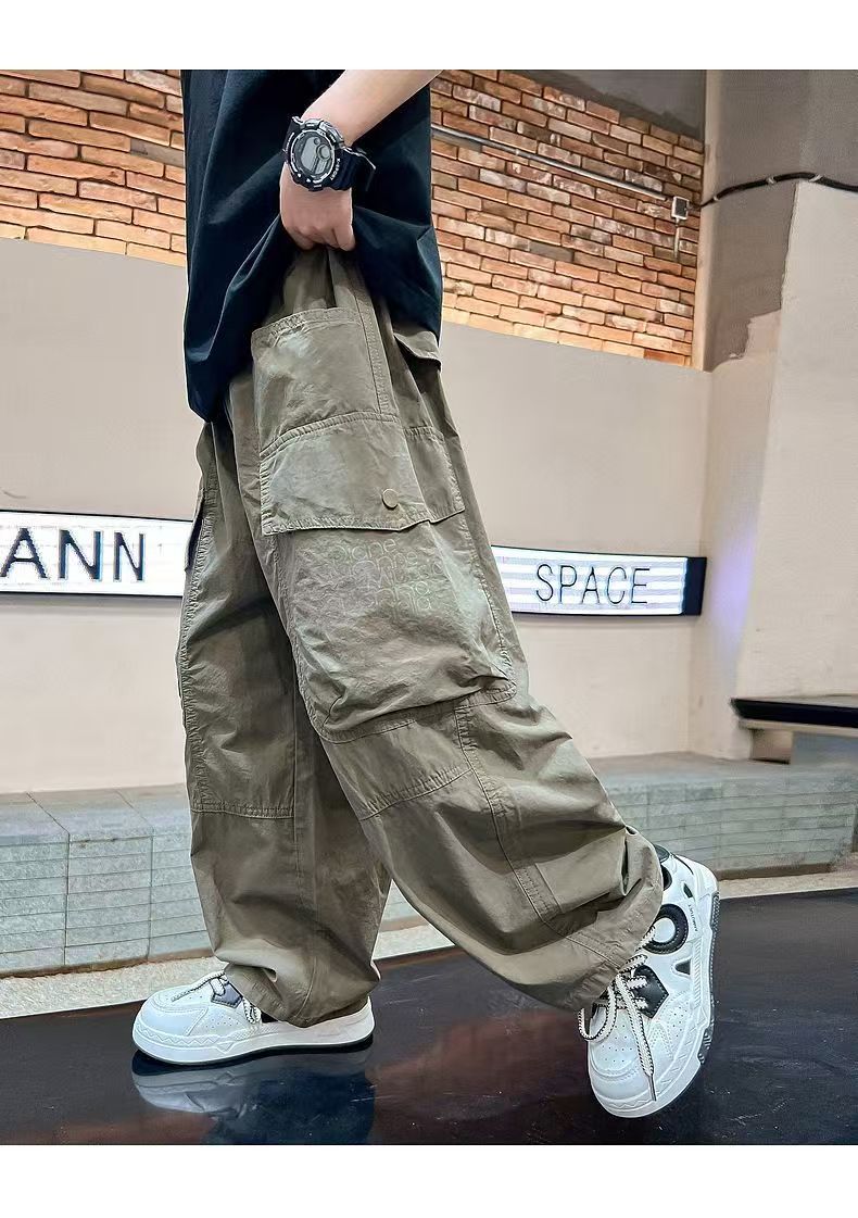 새로운 가을 힙합 작업복 바지 남아용 바지 봄 가을 외출용 트렌디한 가볍고 캐주얼한 스포츠 다용도 와이드 팬츠