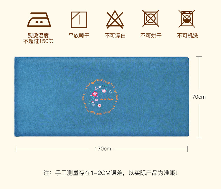 • 코드 길이 2m [한방 12가지 맛] (170*70cm 특대형) 면과 린넨 수 자수 블루
