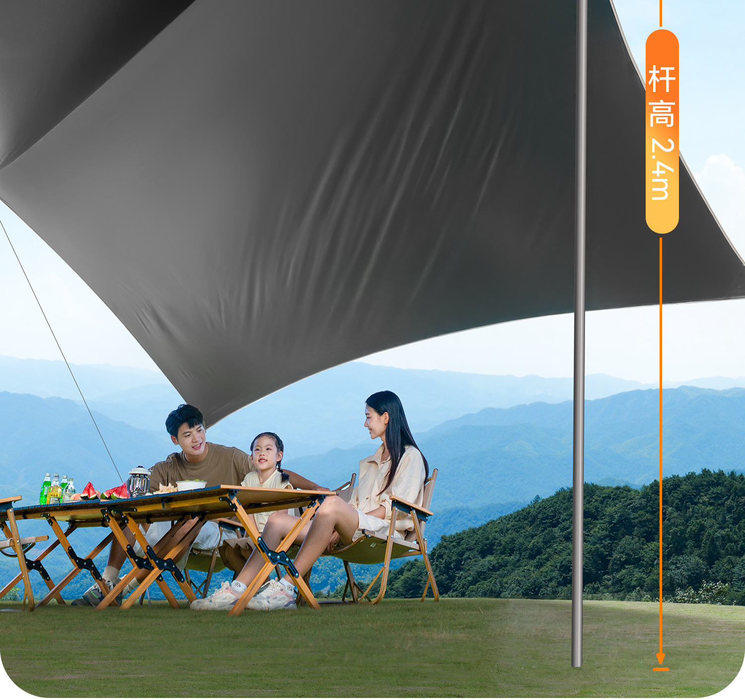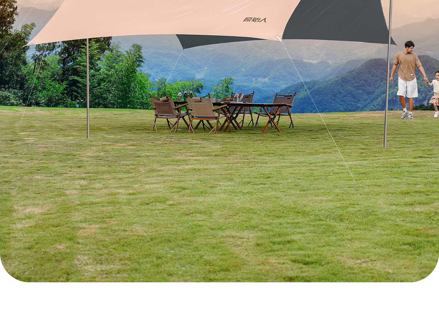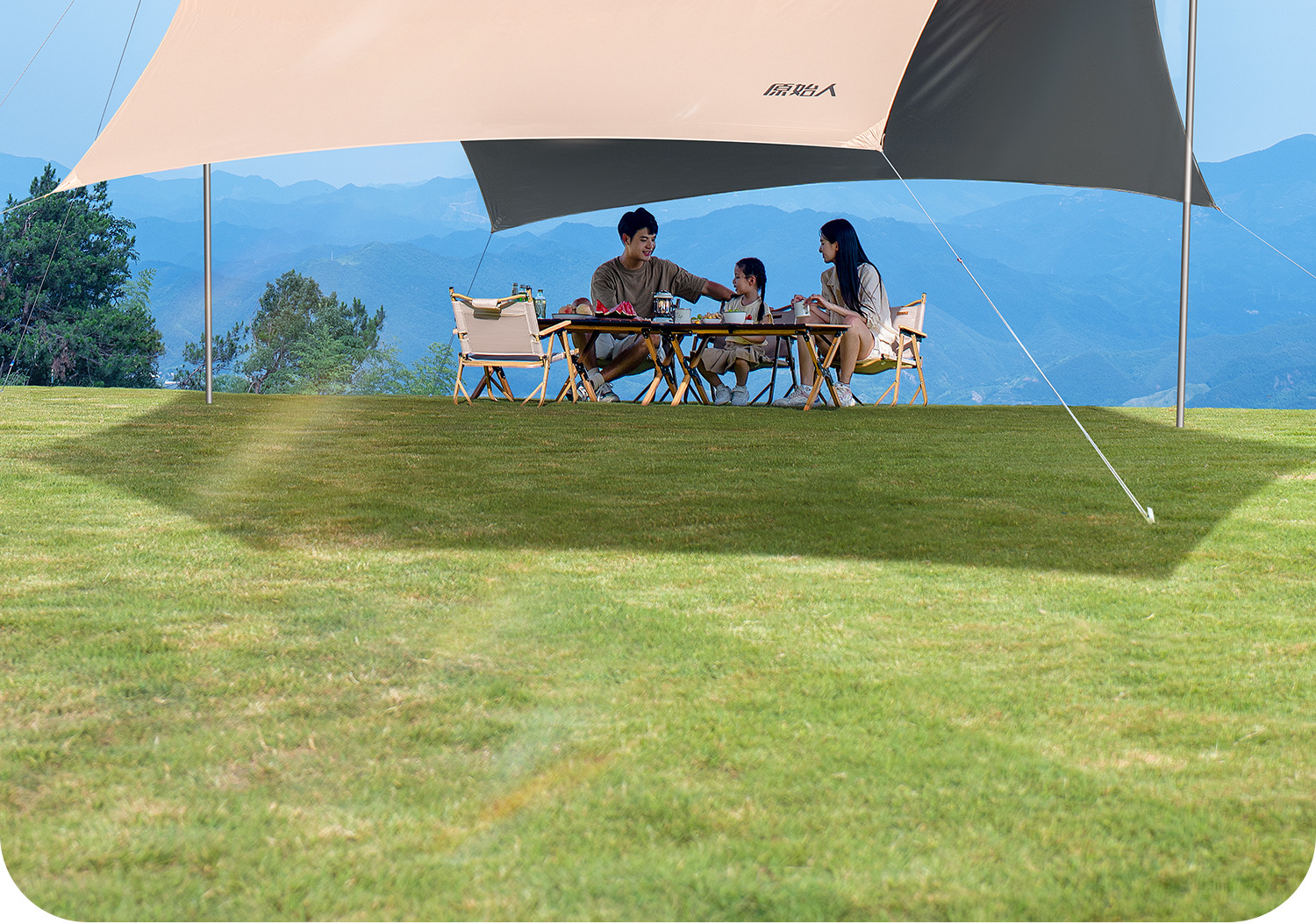 원시 남자 캐노피 텐트 야외 테이블과 의자 캠핑 6 피스 세트 블랙 고무 캠핑 새로운 스타일 비방 피크닉