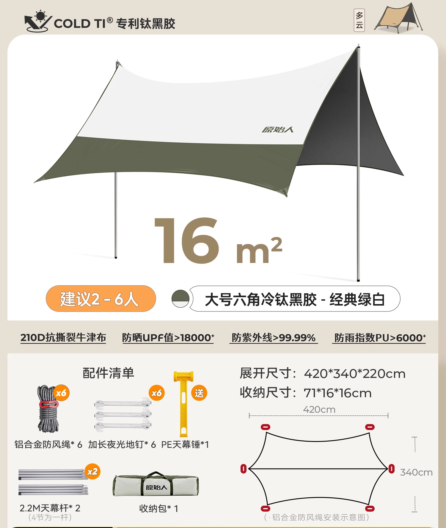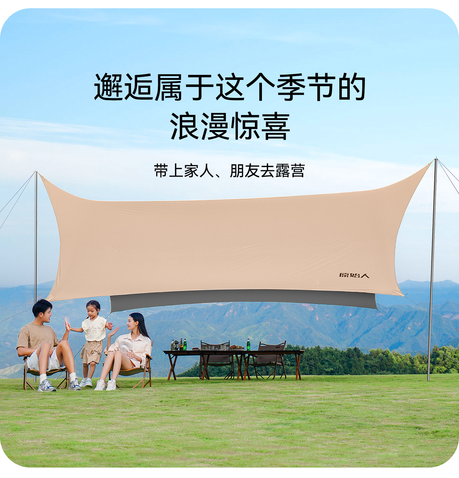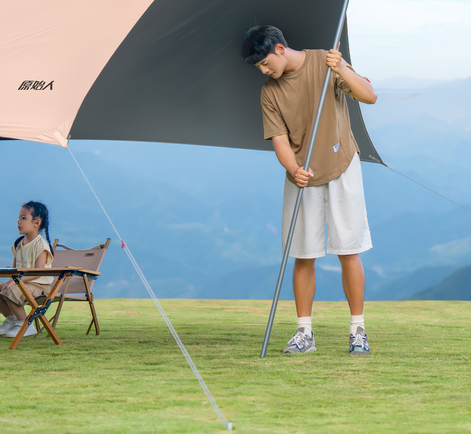 원시 남자 캐노피 텐트 야외 테이블과 의자 캠핑 6 피스 세트 블랙 고무 캠핑 새로운 스타일 비방 피크닉스토어 가기