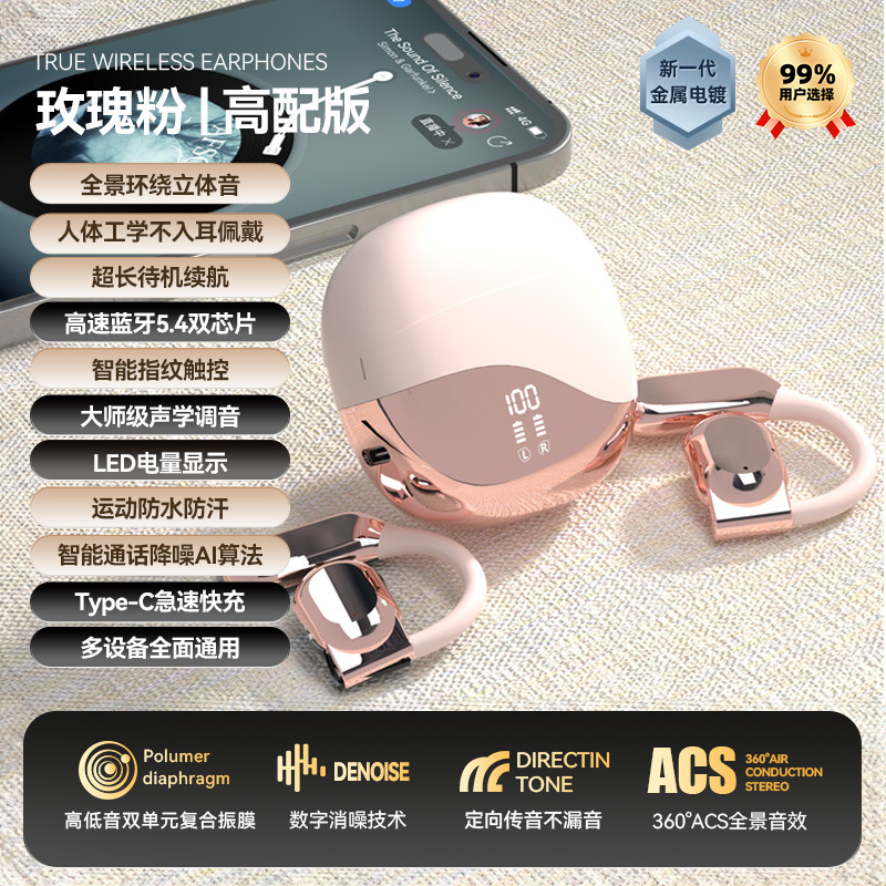 • [로즈핑크 & 플래그십 모델] 파노라마 서라운드 ACS 사운드, 소리 새는 현상 없이 스포츠 소음 감소, 68시간 대기, 통증이나 귀 손상 없이 장시간 착용 가능