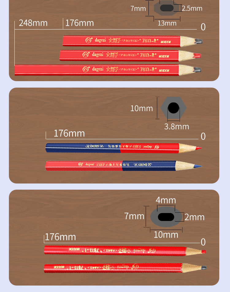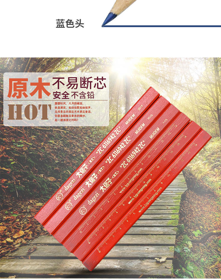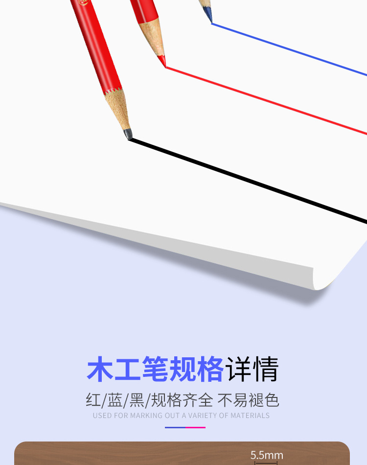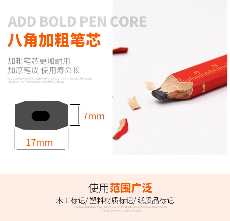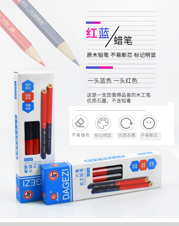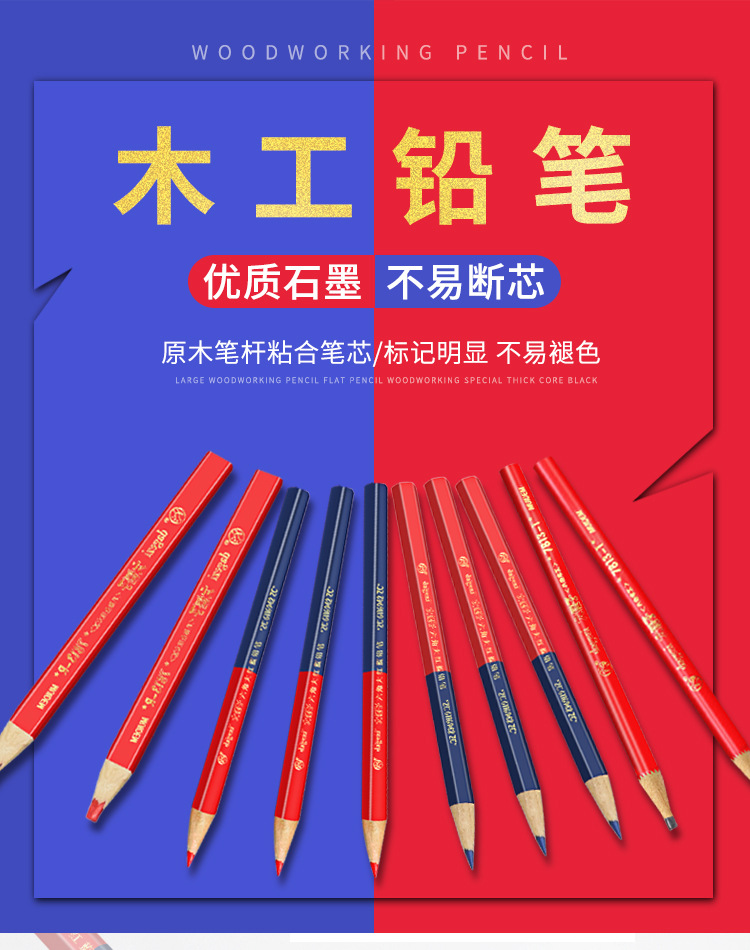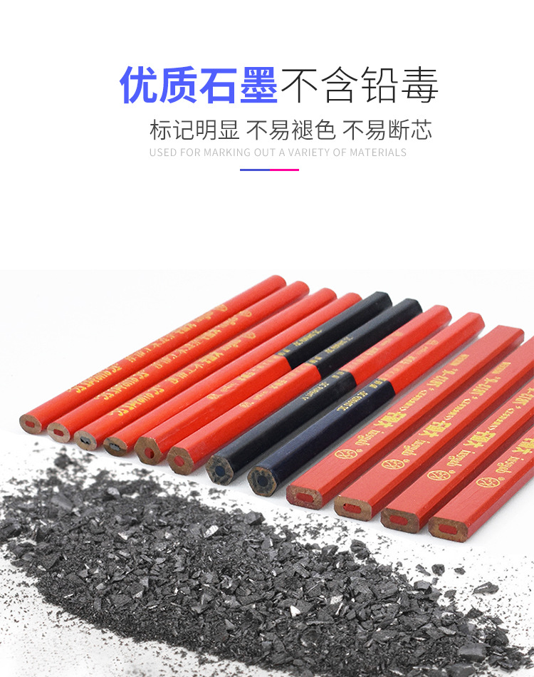 큰 목공 연필 플랫 코어 플랫 헤드 두꺼운 코어 블랙 레드 레드 블루 더블 컬러 기계 연필 사이트 마크스토어 가기
