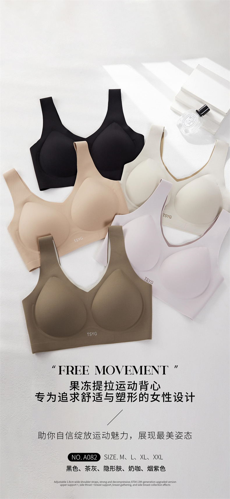 젤리 스트립 소프트 지원 비 마킹 속옷 여성 비 스틸 링 원피스 조끼 스타일 푸시 업 통기성 스포츠 브라스토어 가기