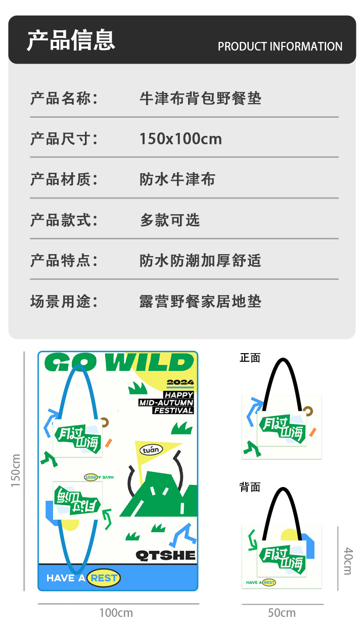 야외 배낭 피크닉 매트 여행 캠핑 두꺼운 휴대용 야외 피크닉 습기 방지 매트 지퍼 런치 백