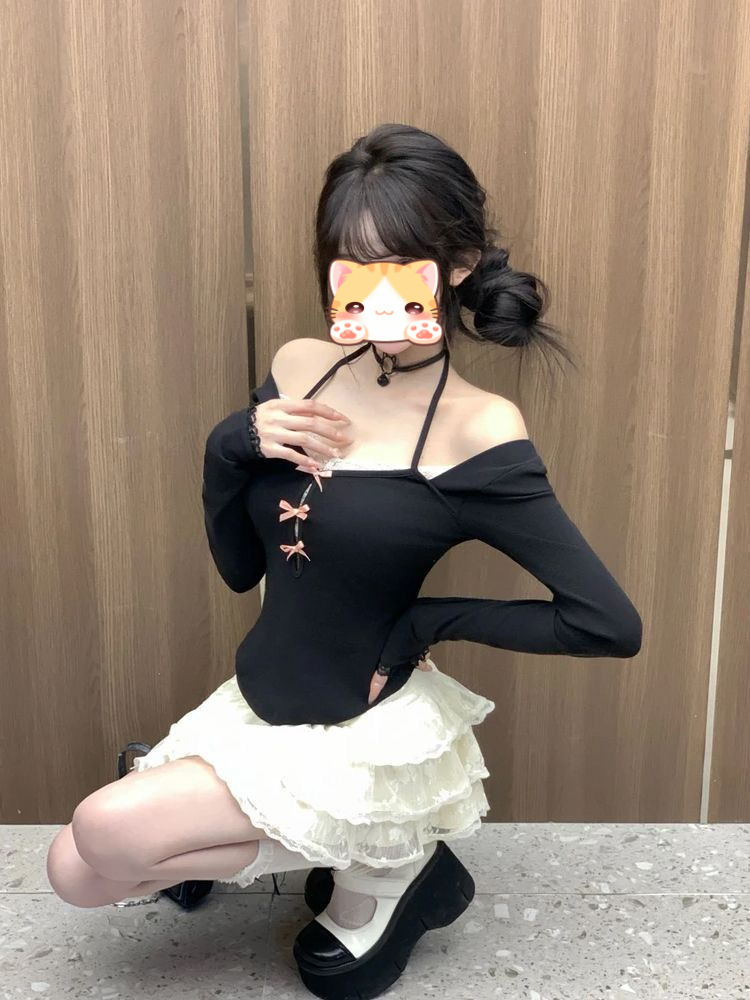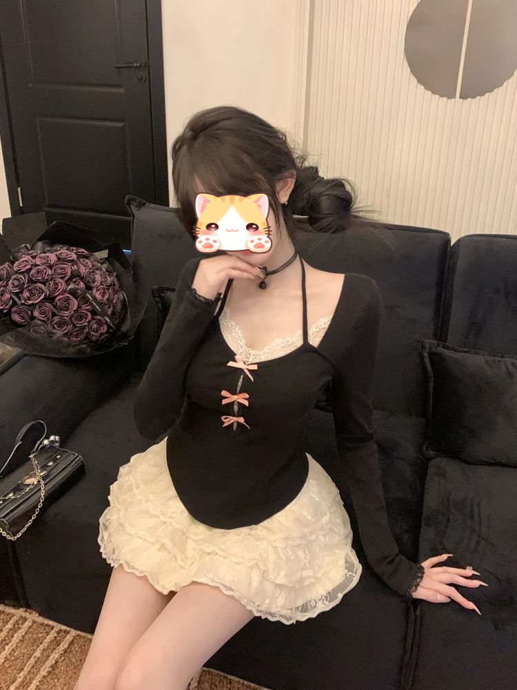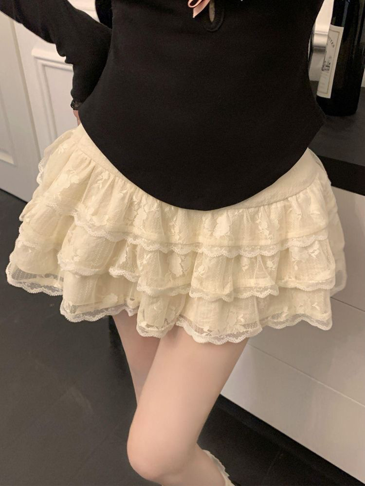 순수한 욕망 레이스 바느질 목 탑 여성의 봄과 여름 새로운 높은 허리 슬리밍 푹신한 케이크 스커트 세트 여성 투피스 세트스토어 가기