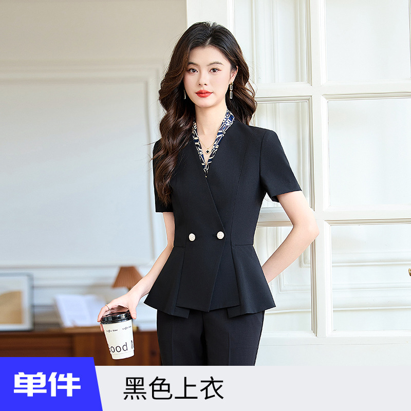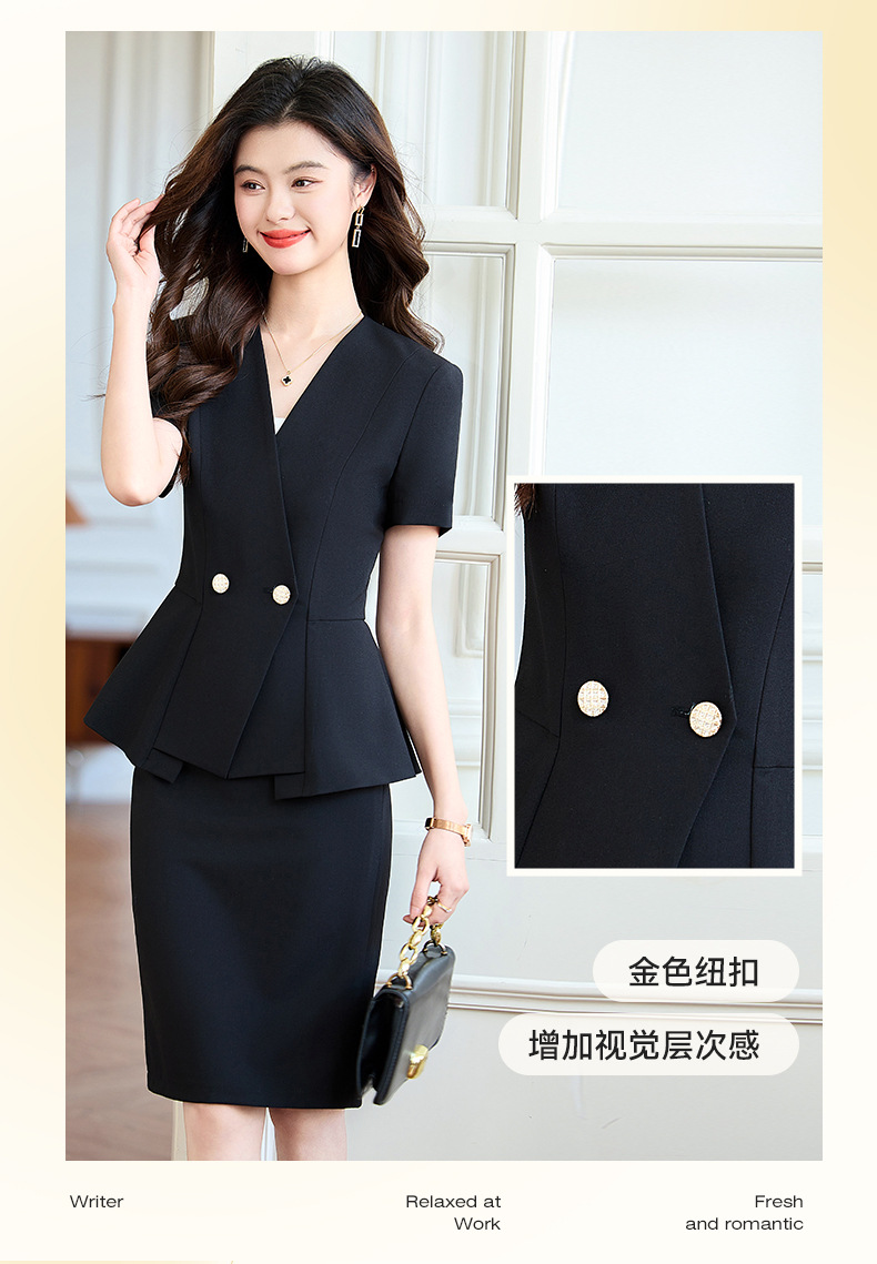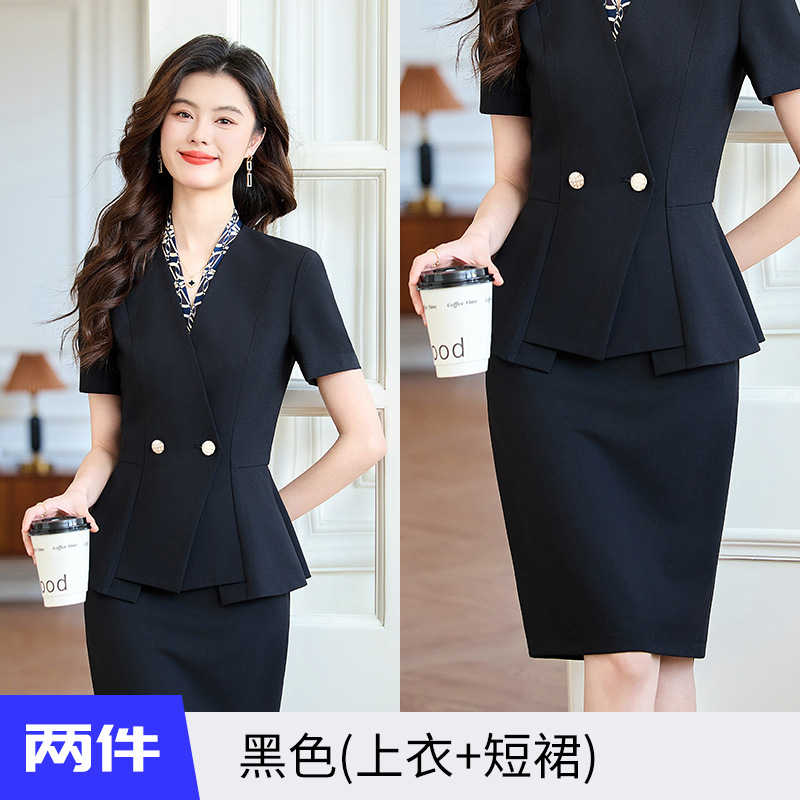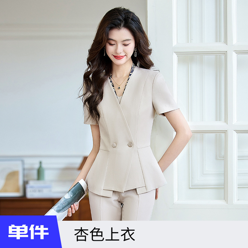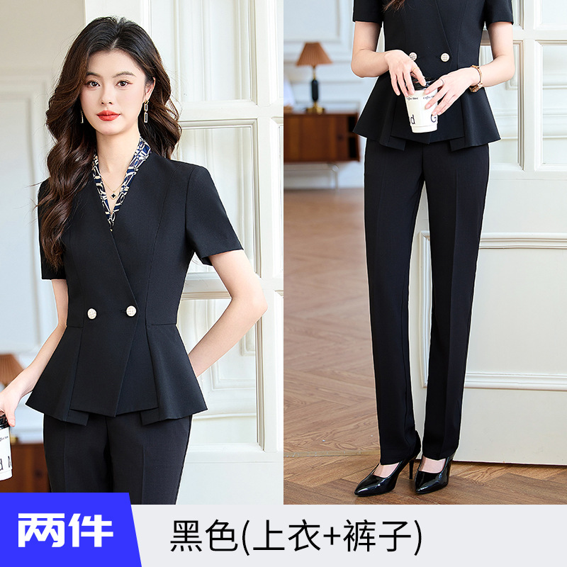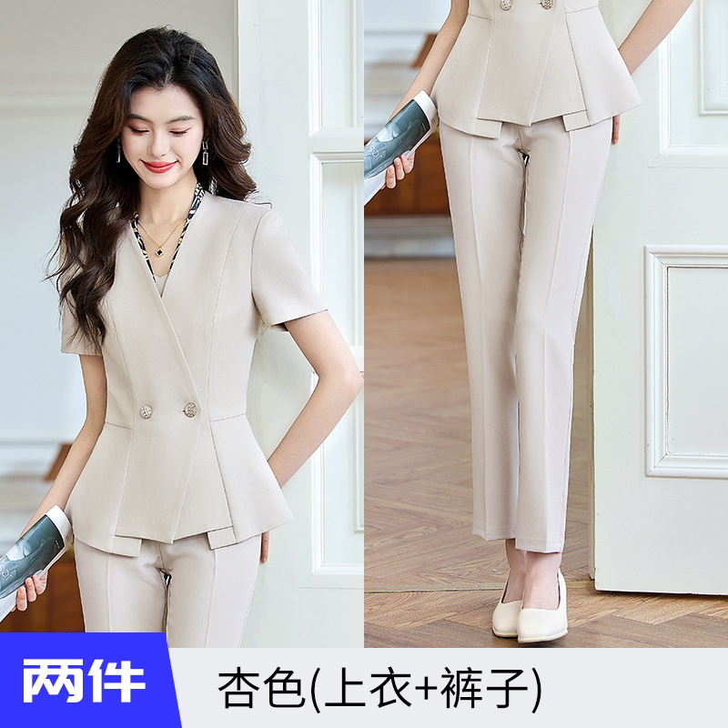 여름 짧은 소매 V 넥 작은 세트 코트 여성 바지 스커트 프로 캐주얼 여름 투피스 세트 25 년 새로운