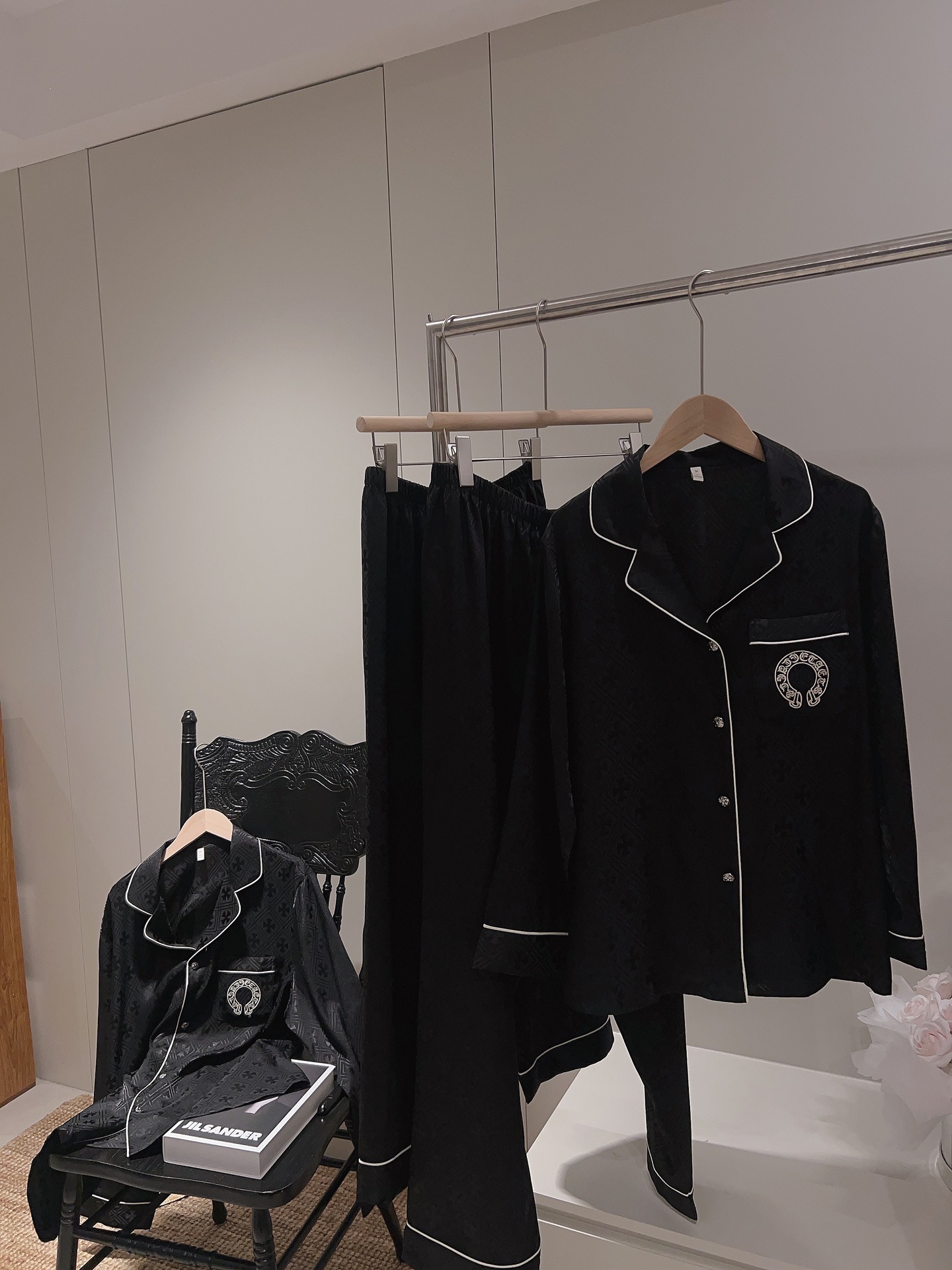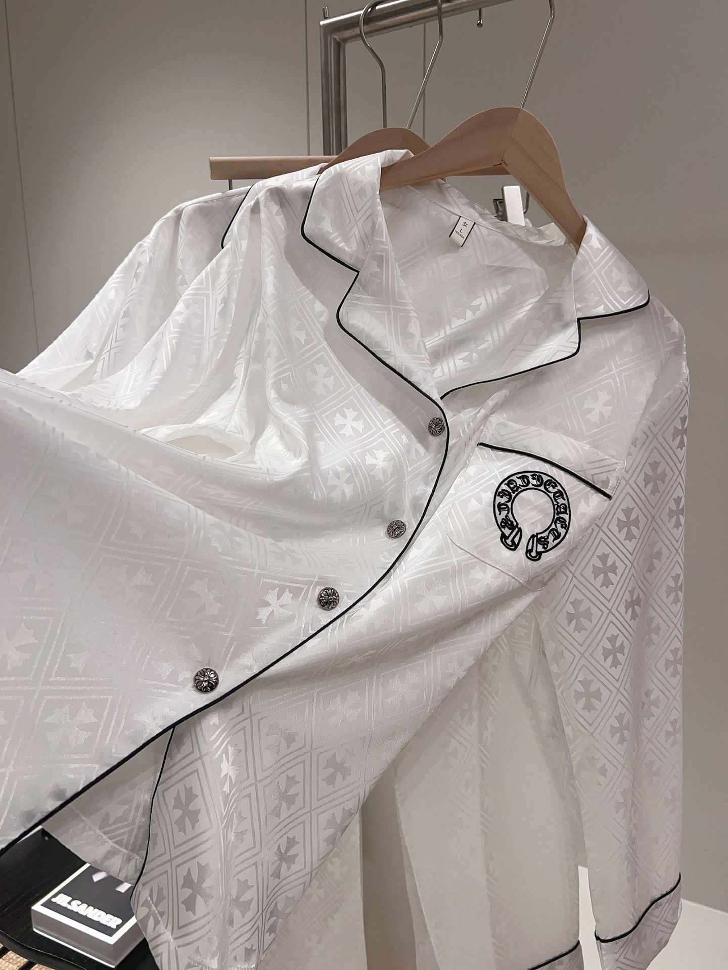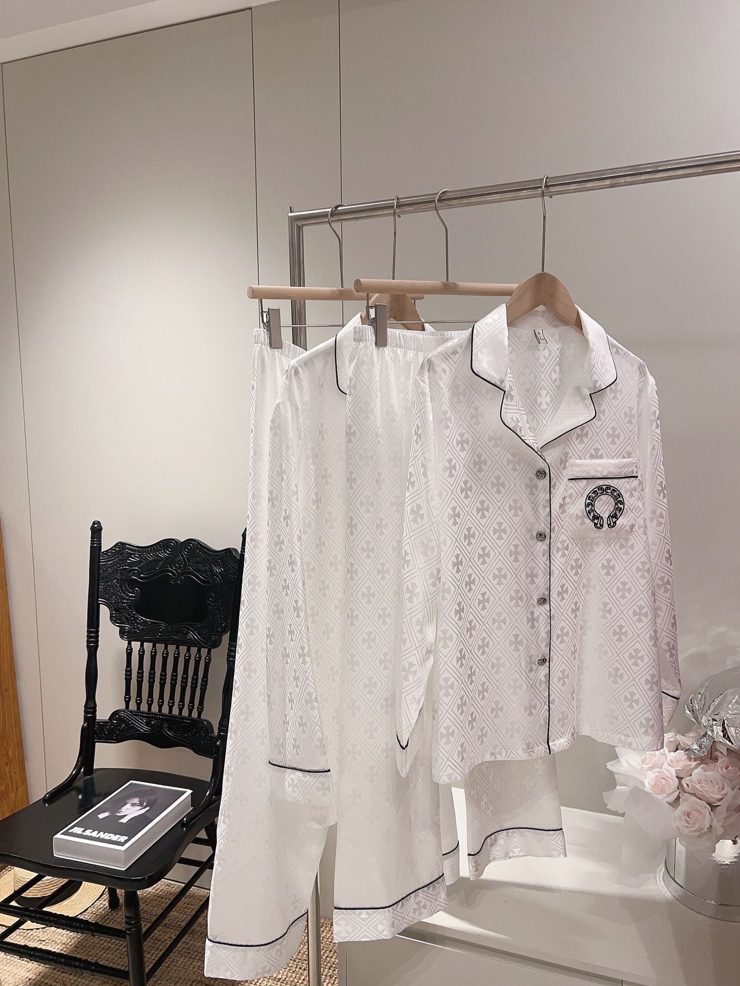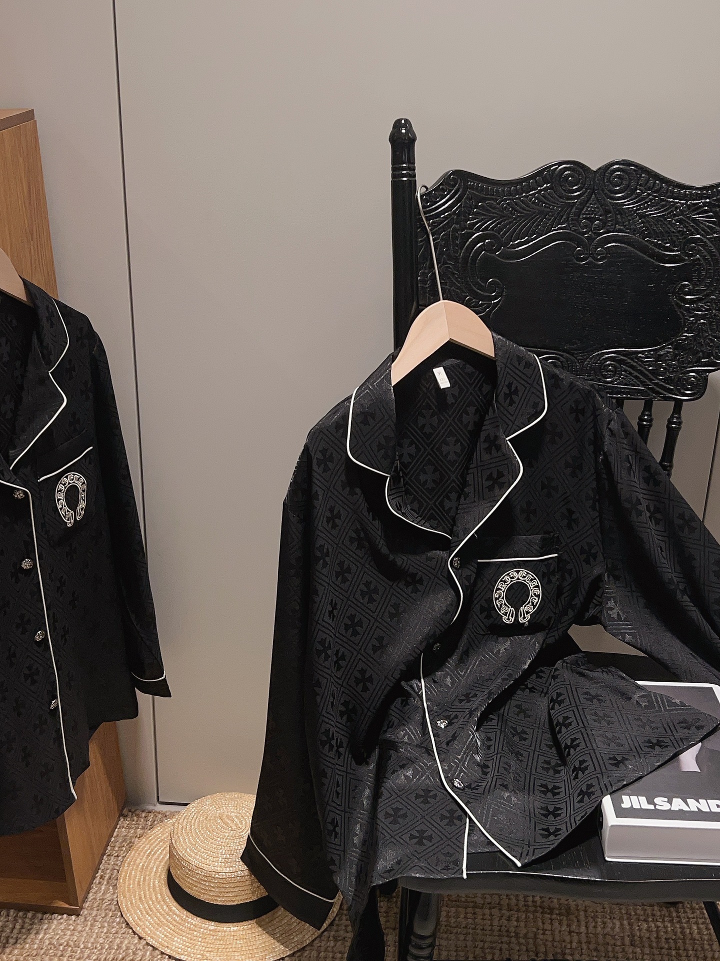큰 브랜드 자수 자카드 커플 잠옷 세트 여름 아이스 실크 봄과 가을 빛 럭셔리 긴 소매 바지 남성과 여성의 얇은 홈 옷스토어 가기