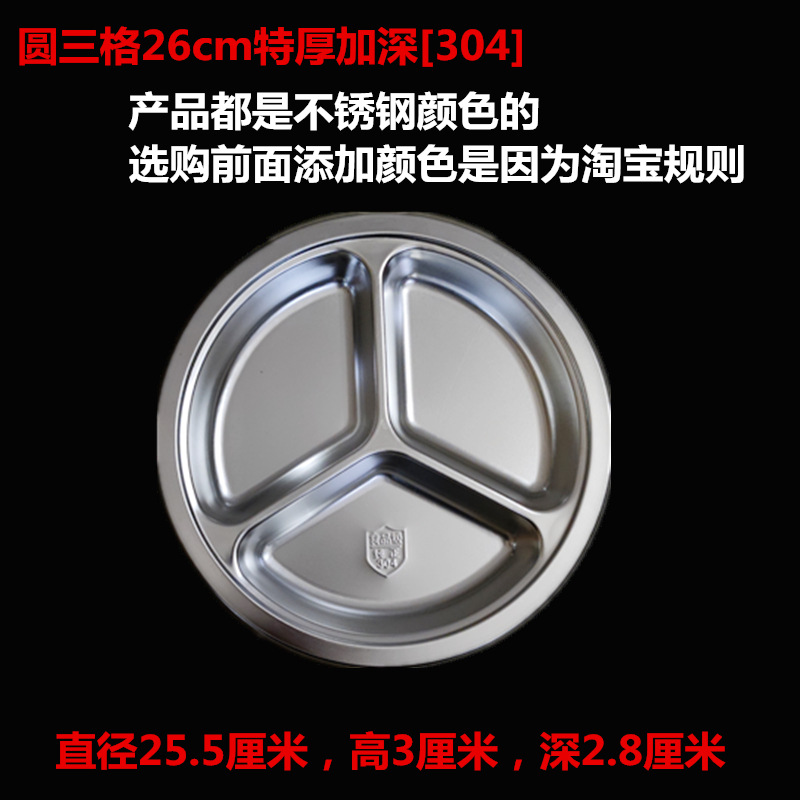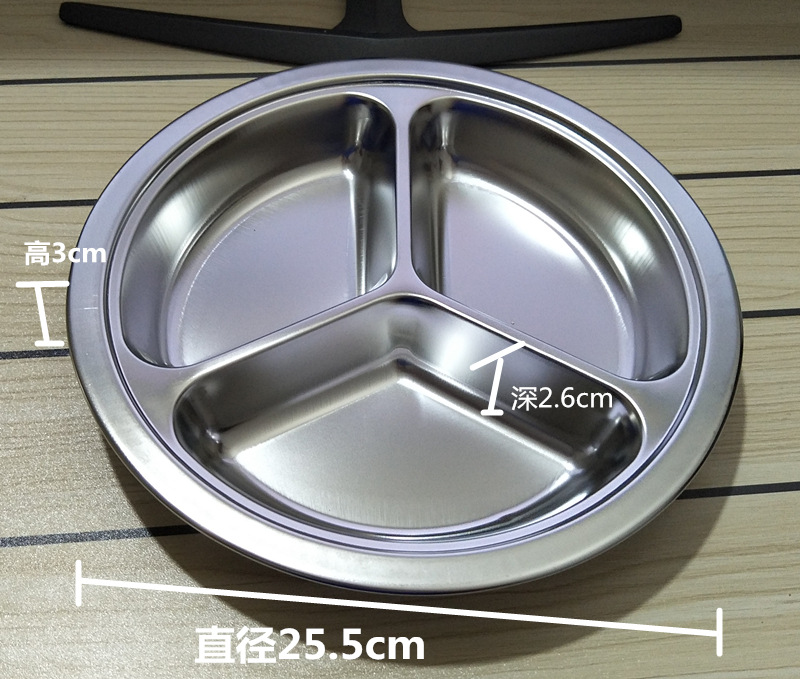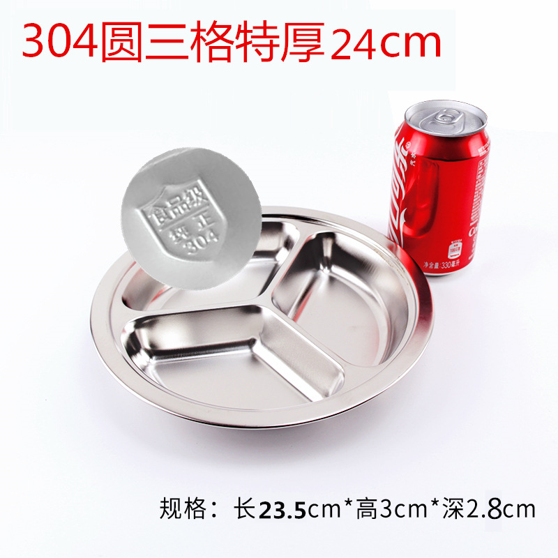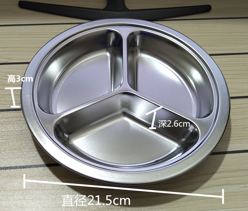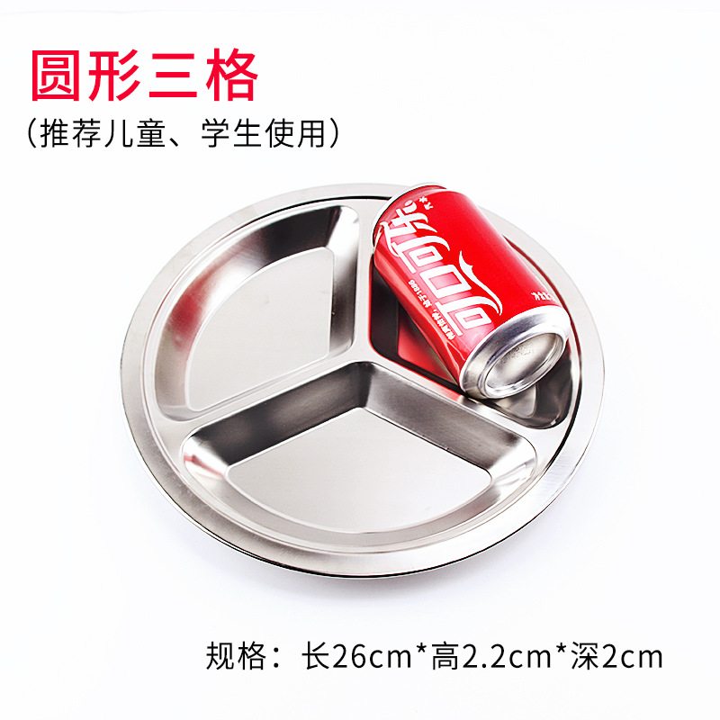 유치원 디너 플레이트 스테인레스 스틸 3 칸 304 매점 분할 패스트 푸드 플레이트 성인과 어린이 분리 디너 플레이트 라운드
