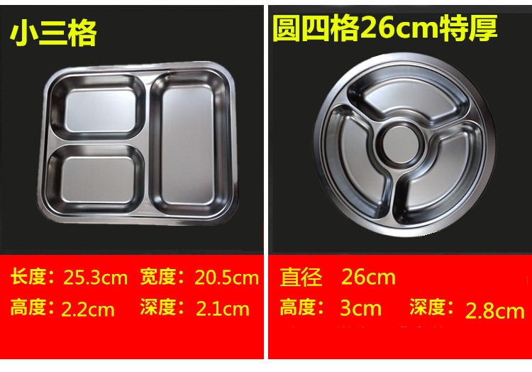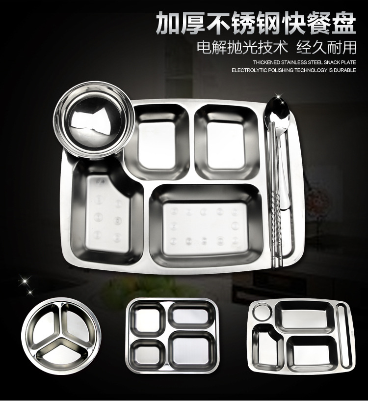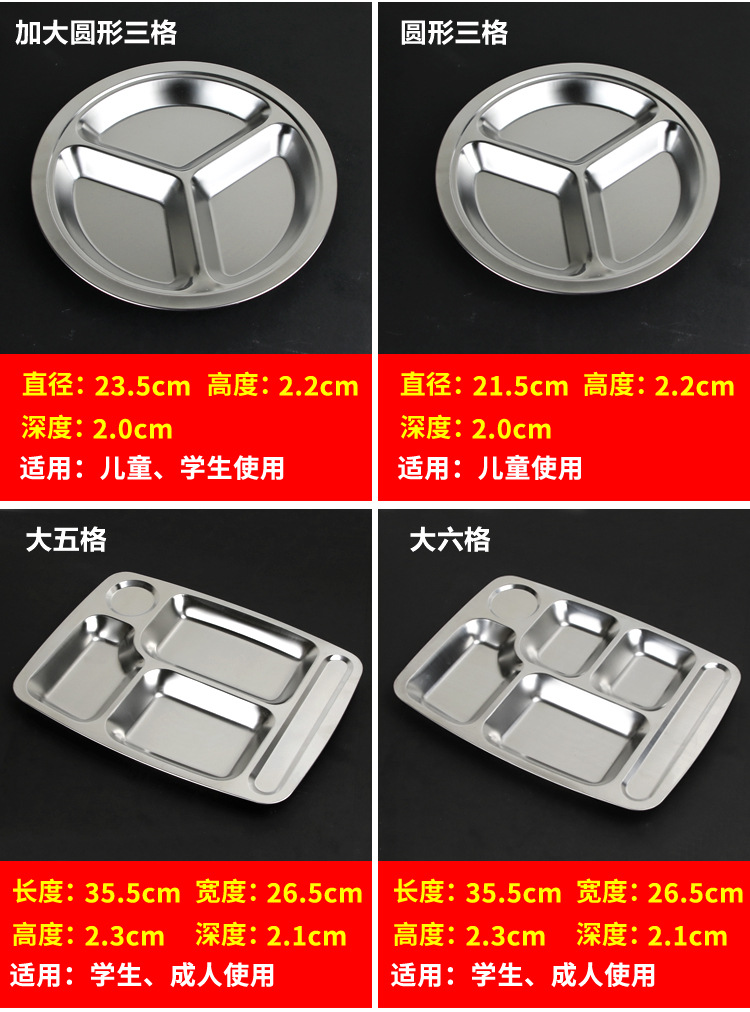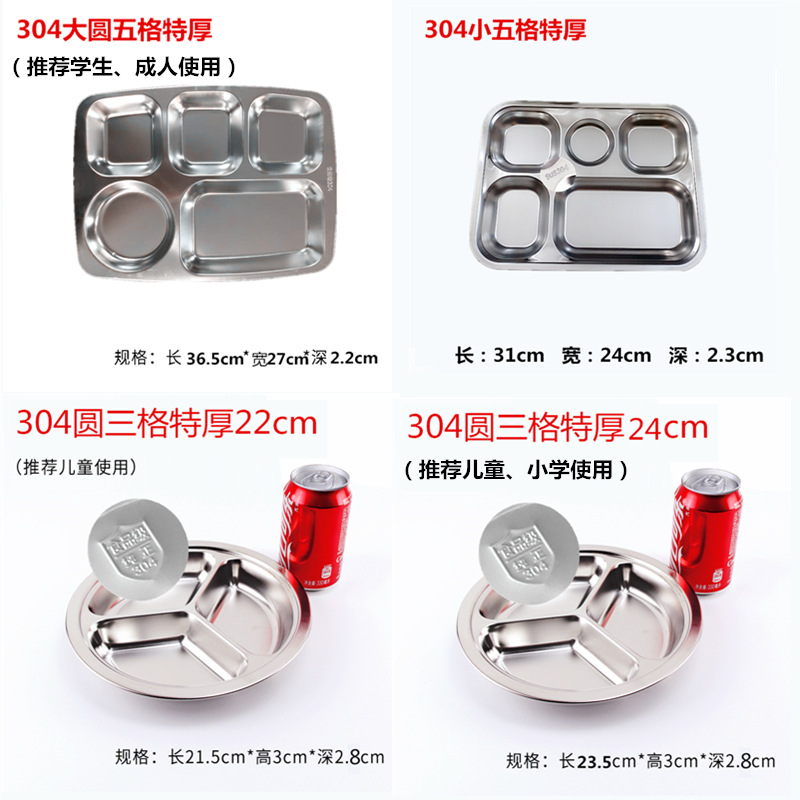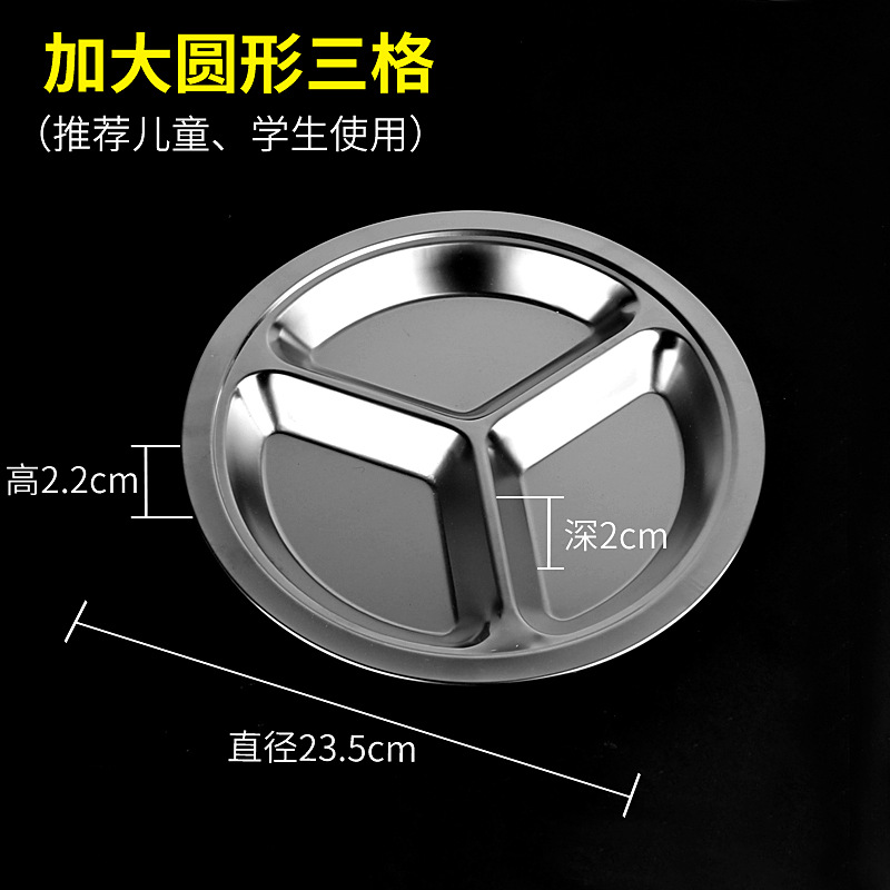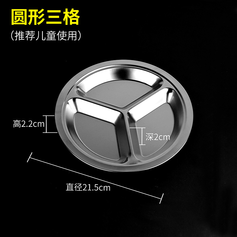 유치원 디너 플레이트 스테인레스 스틸 3 칸 304 매점 분할 패스트 푸드 플레이트 성인과 어린이 분리 디너 플레이트 라운드스토어 가기