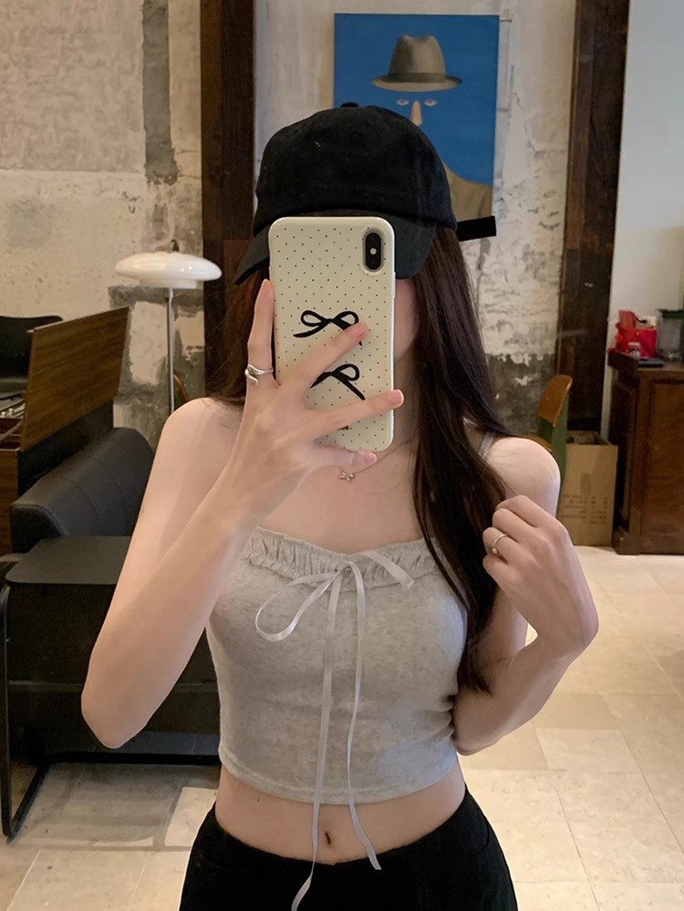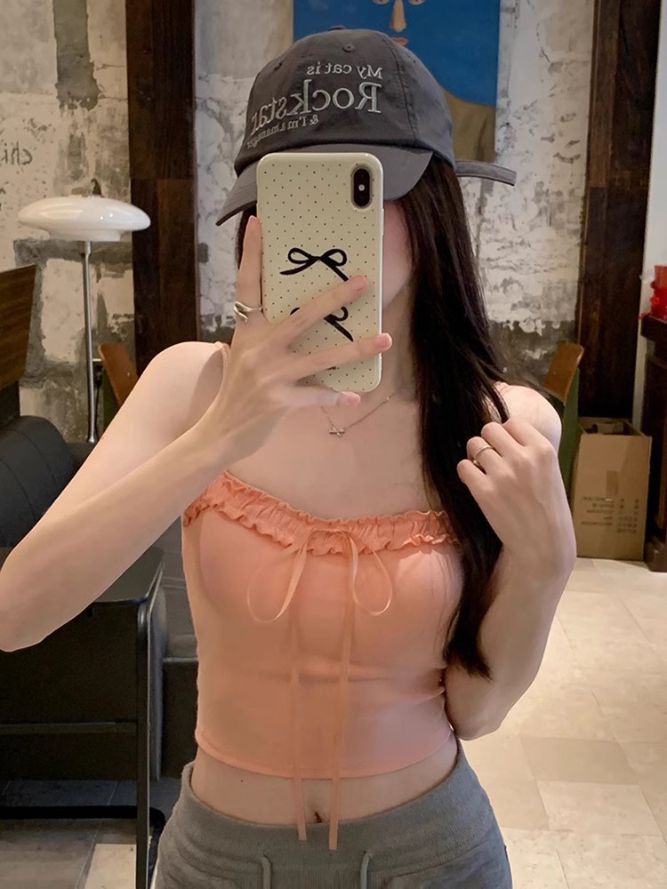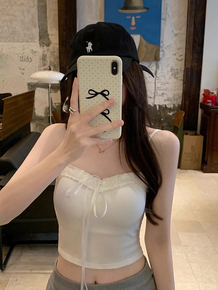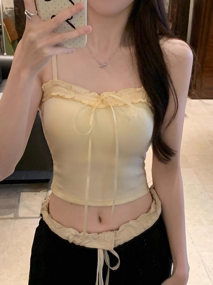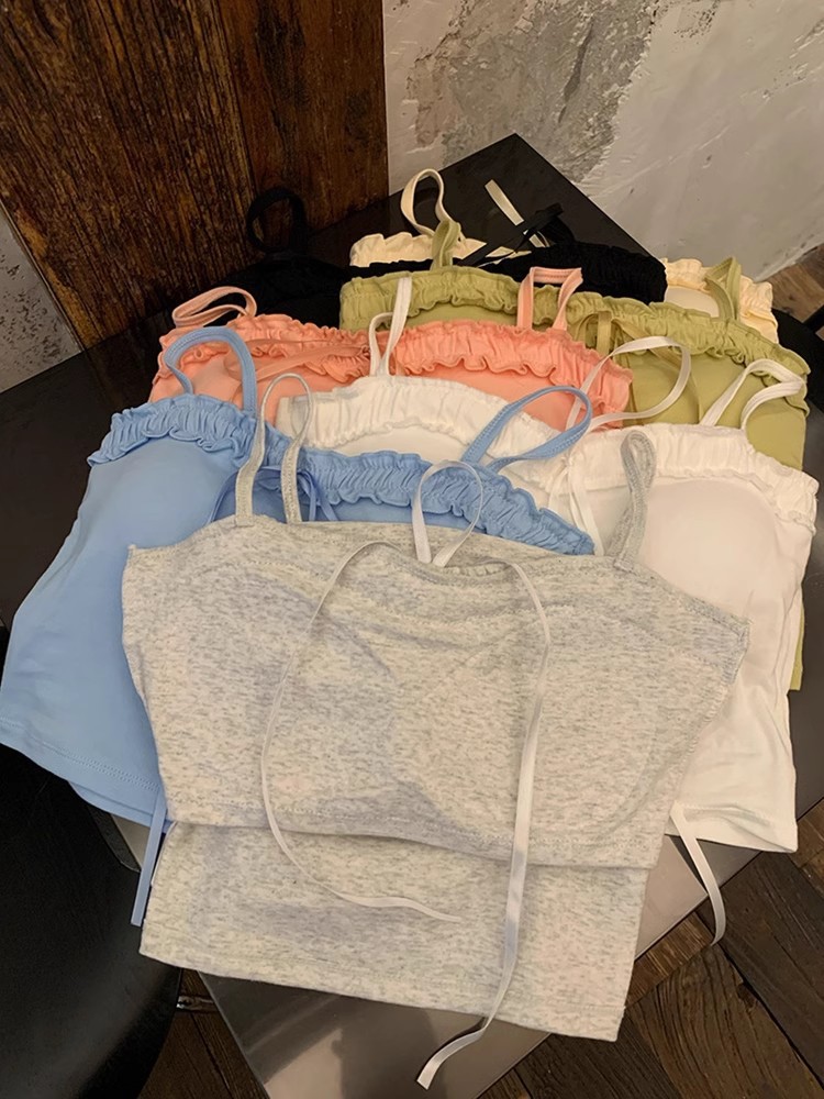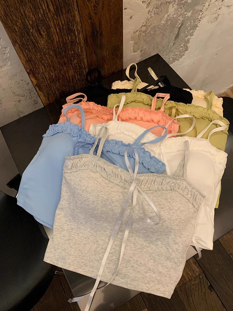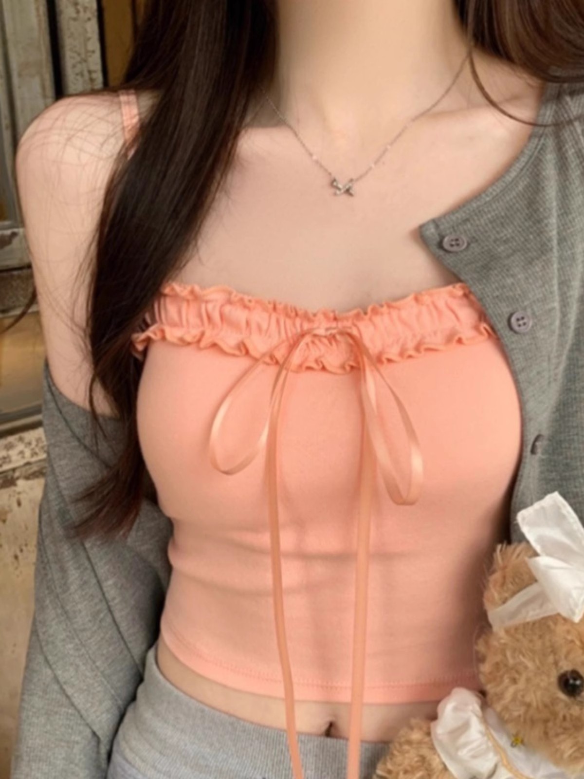 달콤한 소녀 순수한 욕망 레이스 주름 활 레이스 가슴 패드 카미솔 조끼 여성의 신선하고 귀여운 내부 작은 카미솔 여름