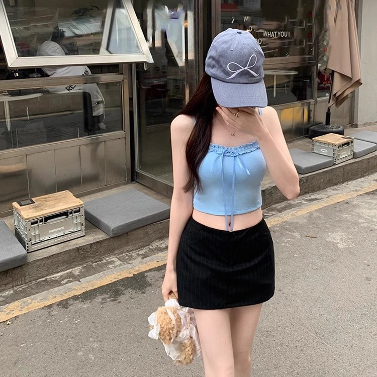 달콤한 소녀 순수한 욕망 레이스 주름 활 레이스 가슴 패드 카미솔 조끼 여성의 신선하고 귀여운 내부 작은 카미솔 여름스토어 가기