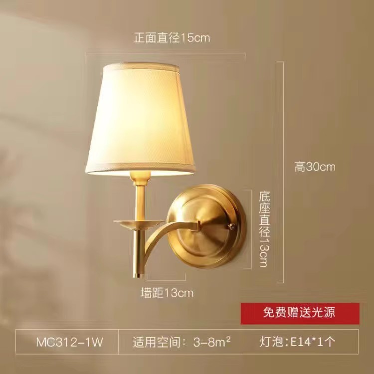 국경 간 공급 침실 침실 벽 램프 모든 구리 노르딕 현대 창조적 인 배선 무료 충전식 복도 디자이너 램프스토어 가기