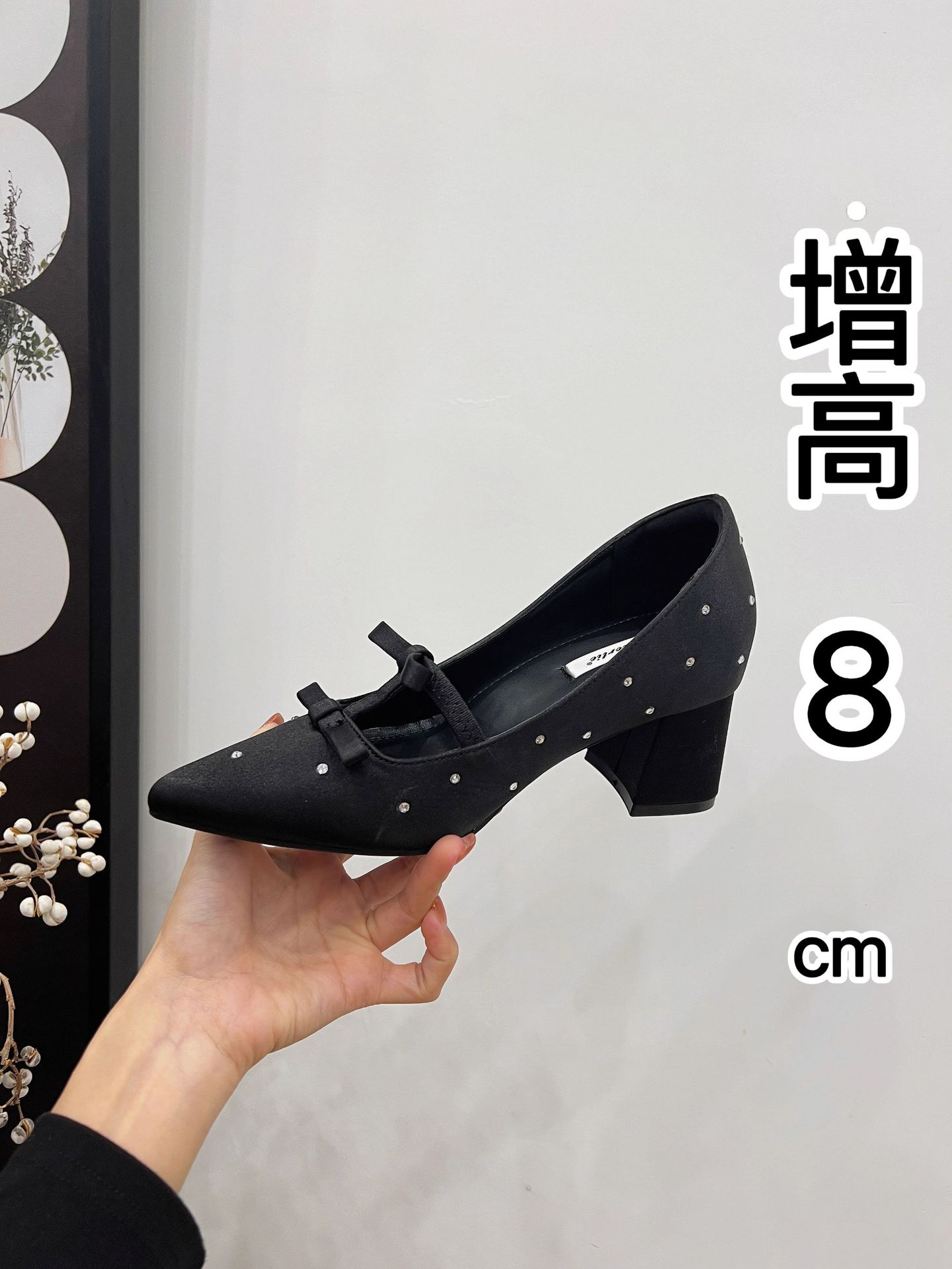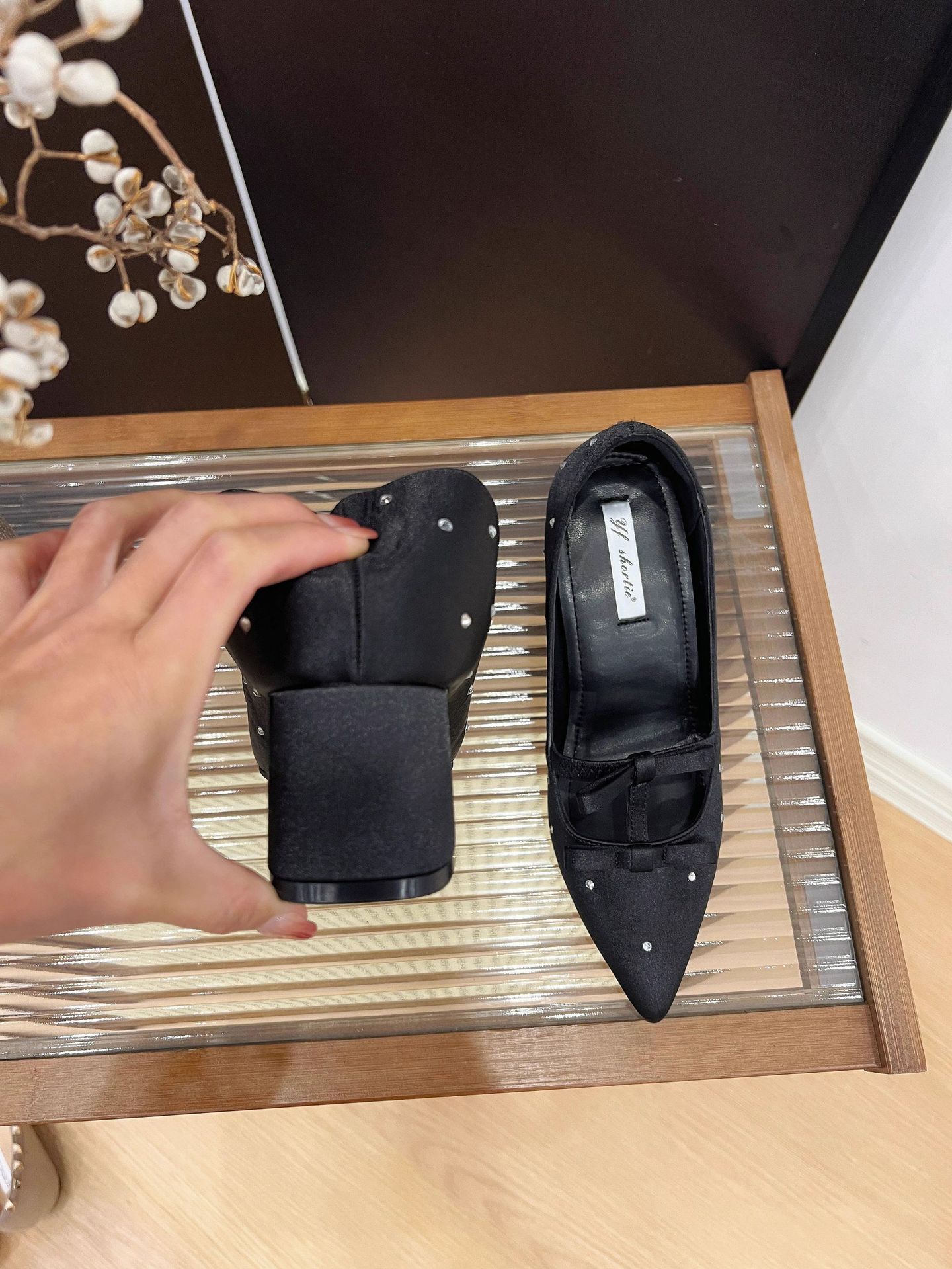 내부 높이 여성 신발 새틴 활 두꺼운 힐 신발 2025 봄 새로운 하이 엔드 라인스톤 포인팅 하이힐스토어 가기