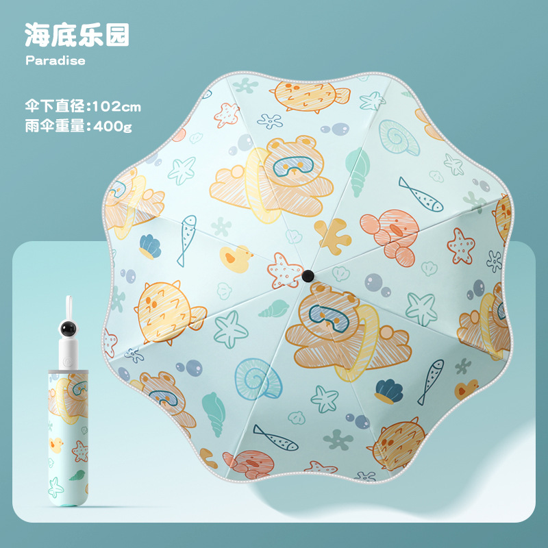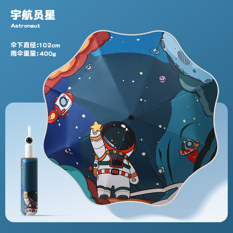 자동 3 배 자외선 차단제 어린이 우산 우주 비행사는 소년과 소녀들에게 맑고 비가 오는 이중 목적 우산 둥근 코너 안전을받습니다.