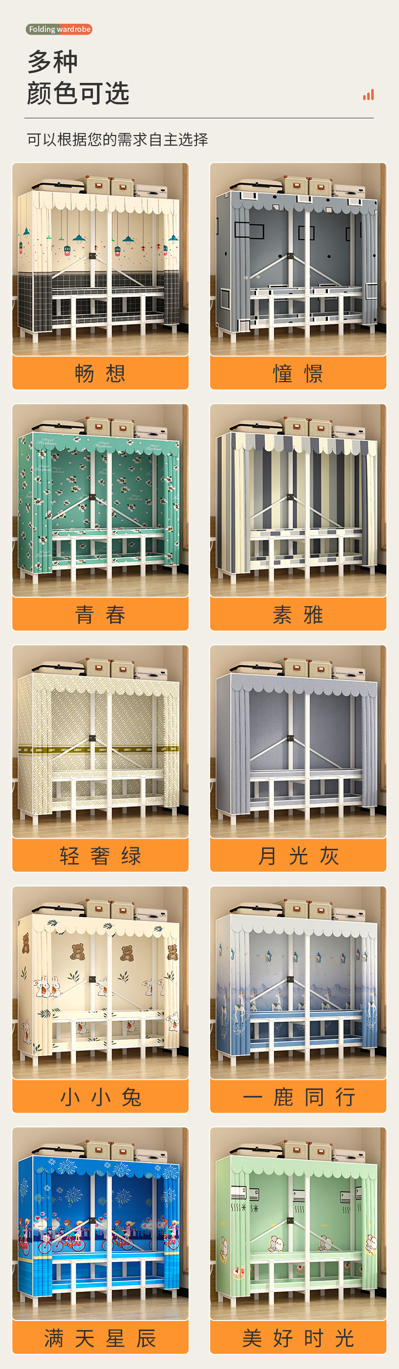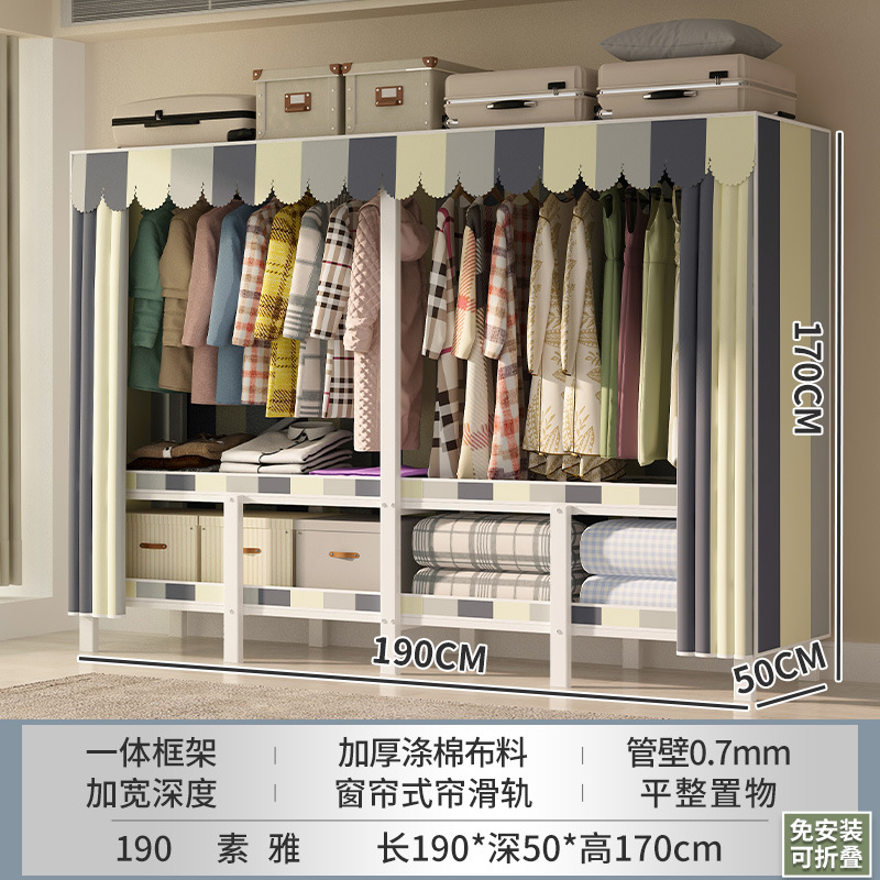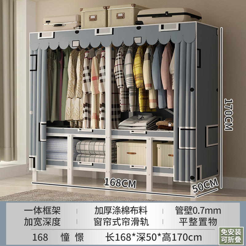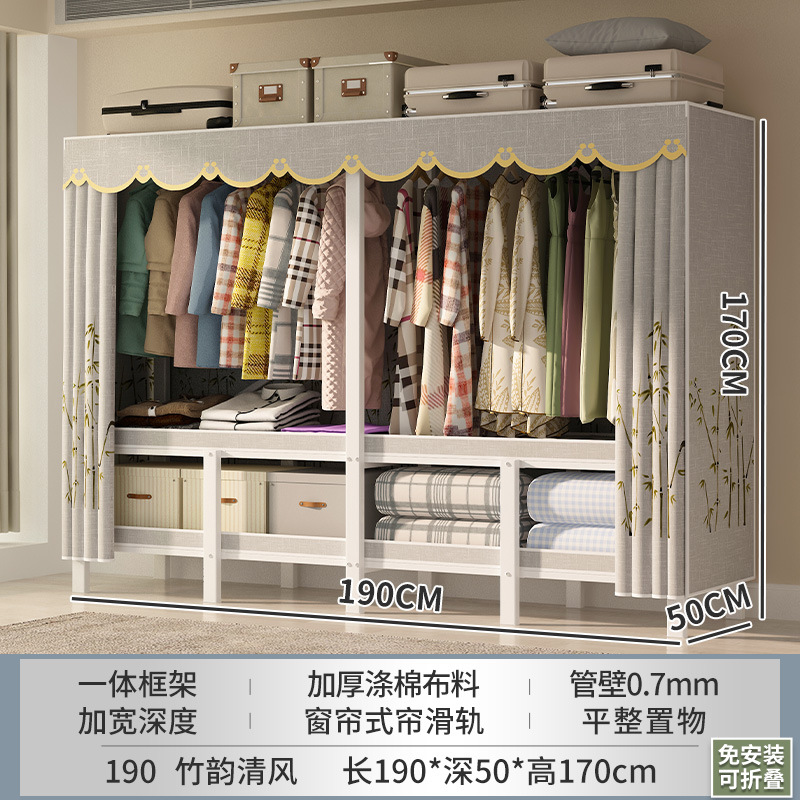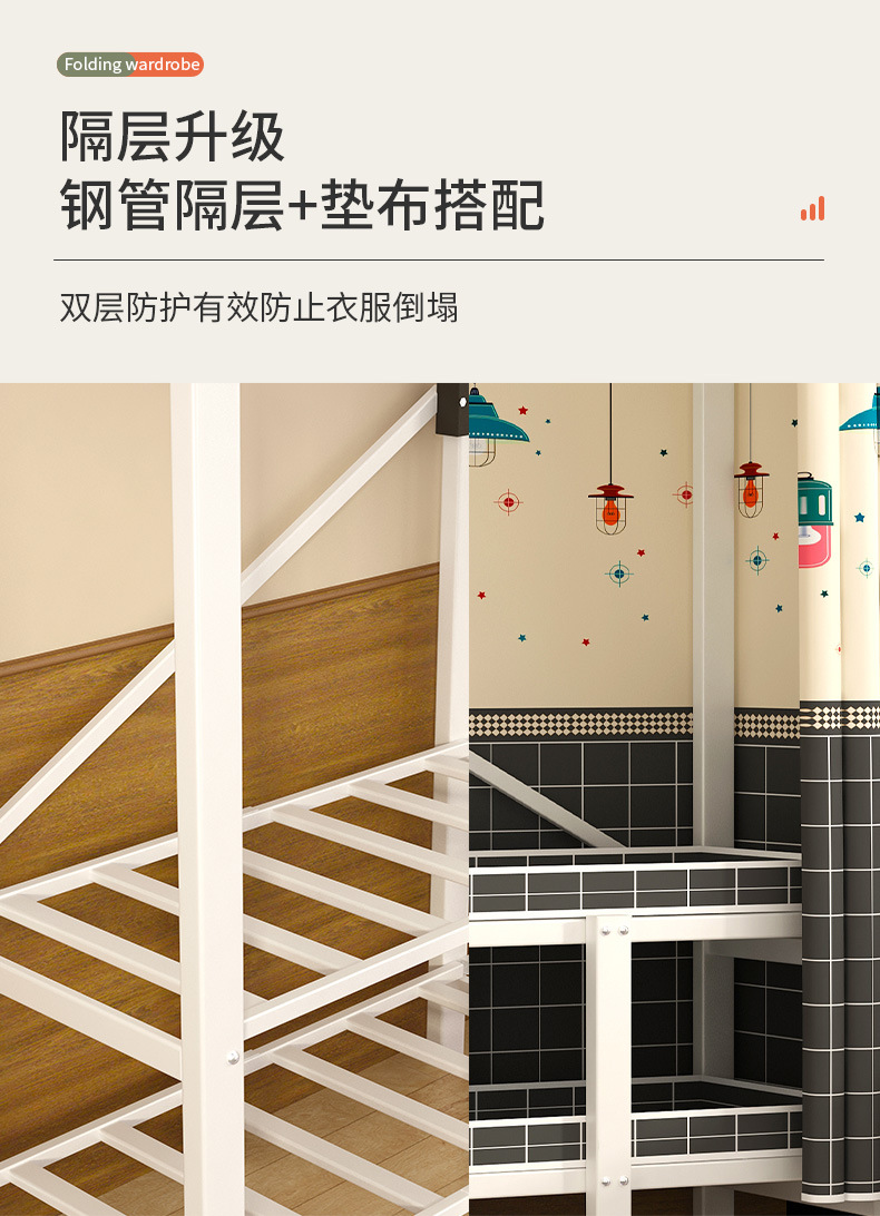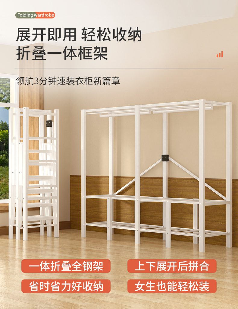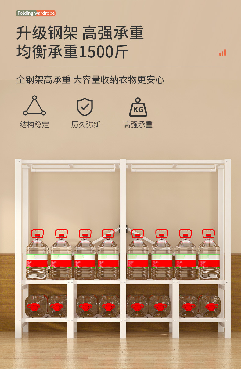 설치-무료 통합 접이식 옷장 대여실 바닥-스탠딩 스토리지 옷장 가정용 침실 방진 천 옷장 화이트스토어 가기