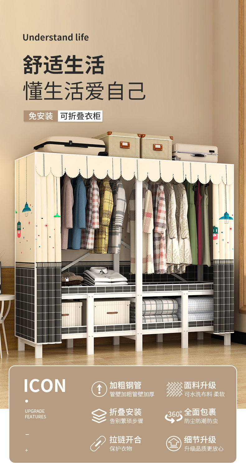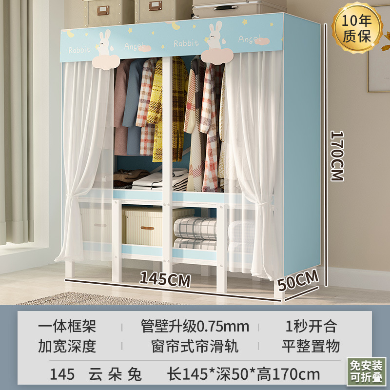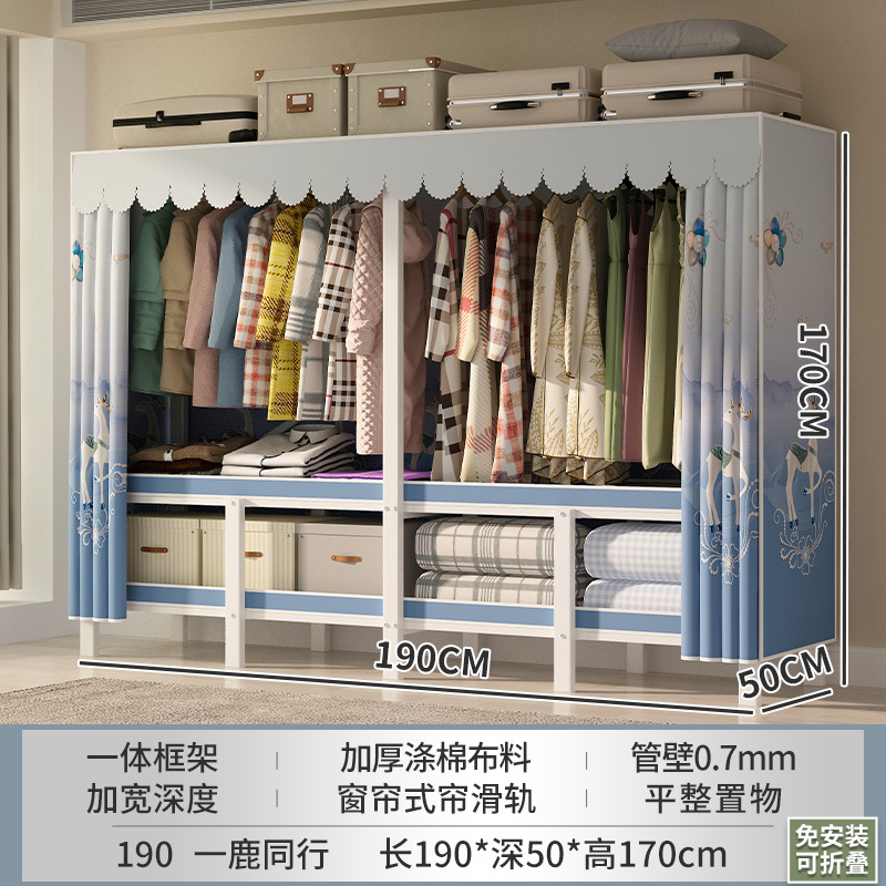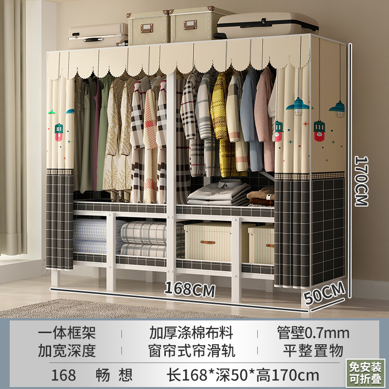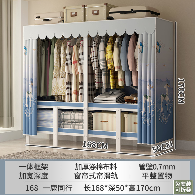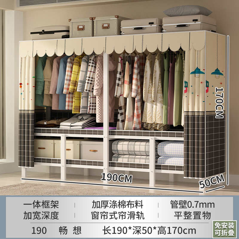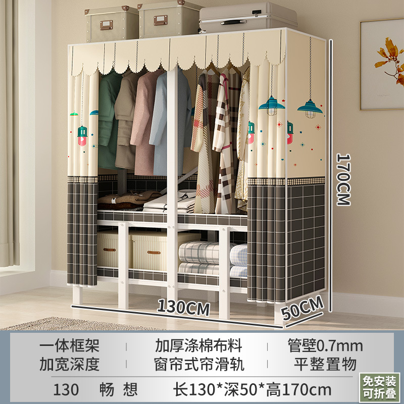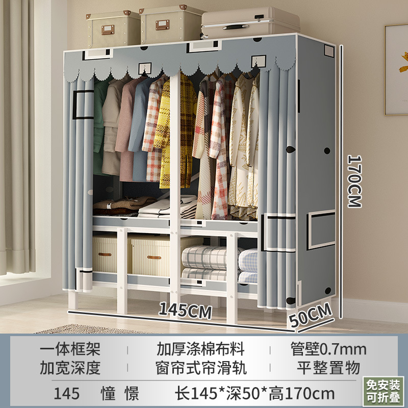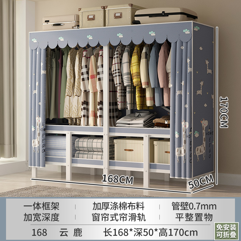 설치-무료 통합 접이식 옷장 대여실 바닥-스탠딩 스토리지 옷장 가정용 침실 방진 천 옷장 화이트스토어 가기