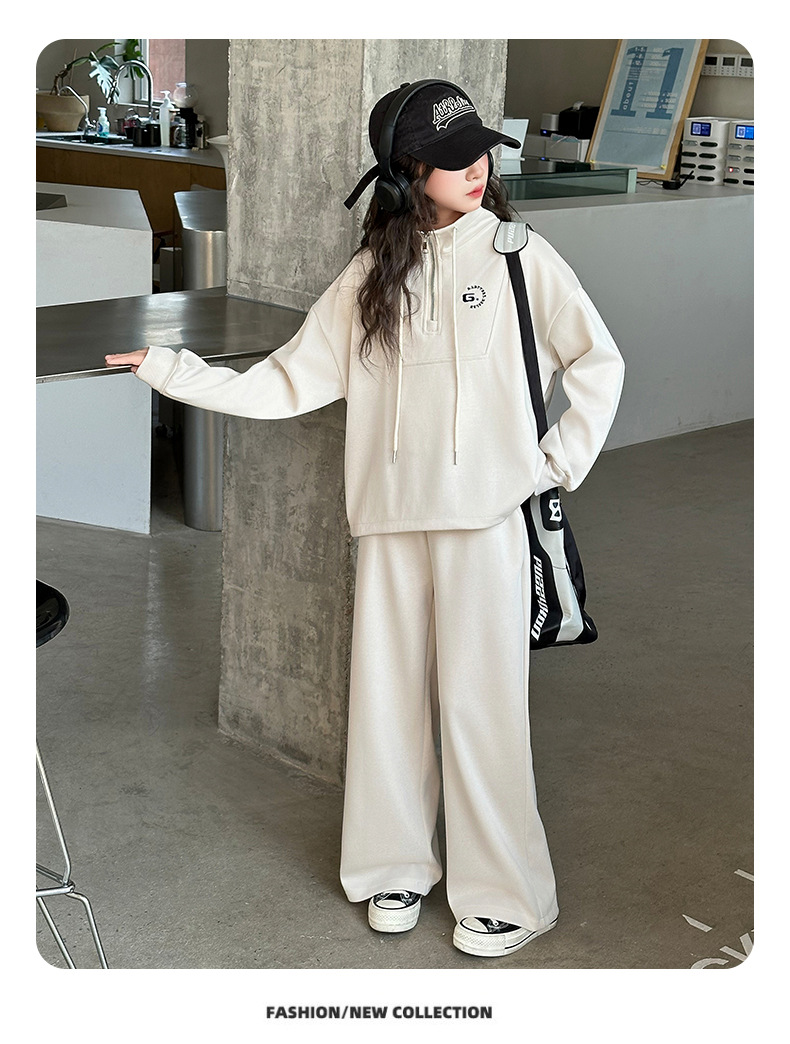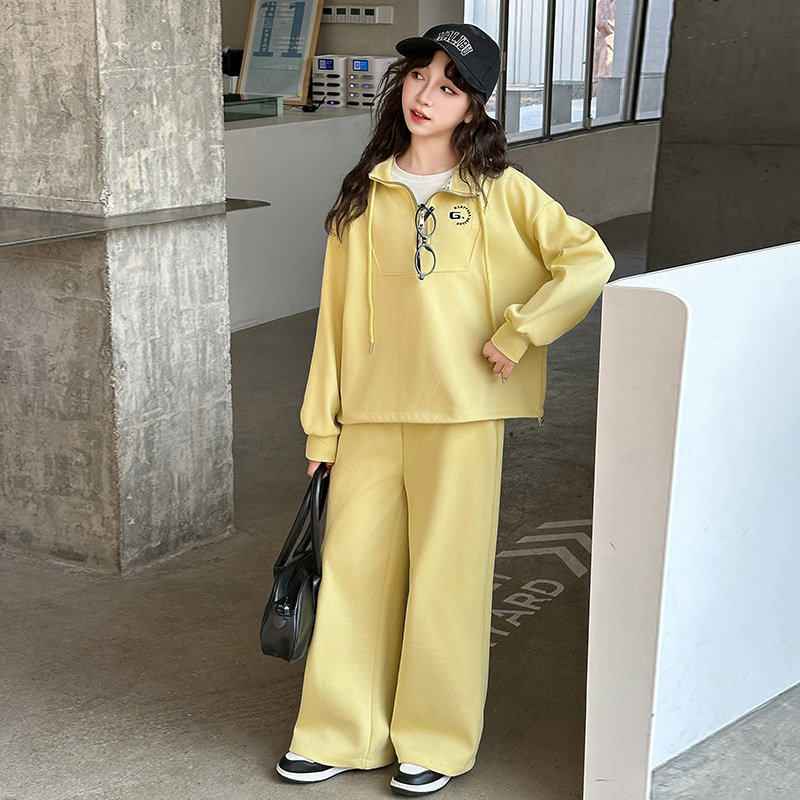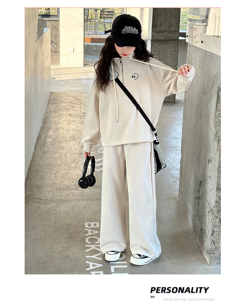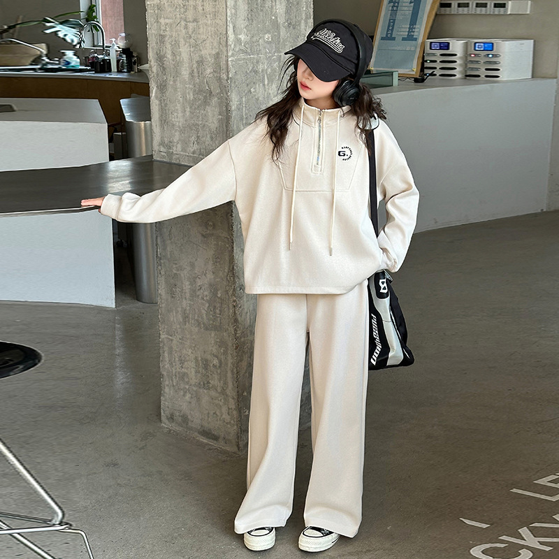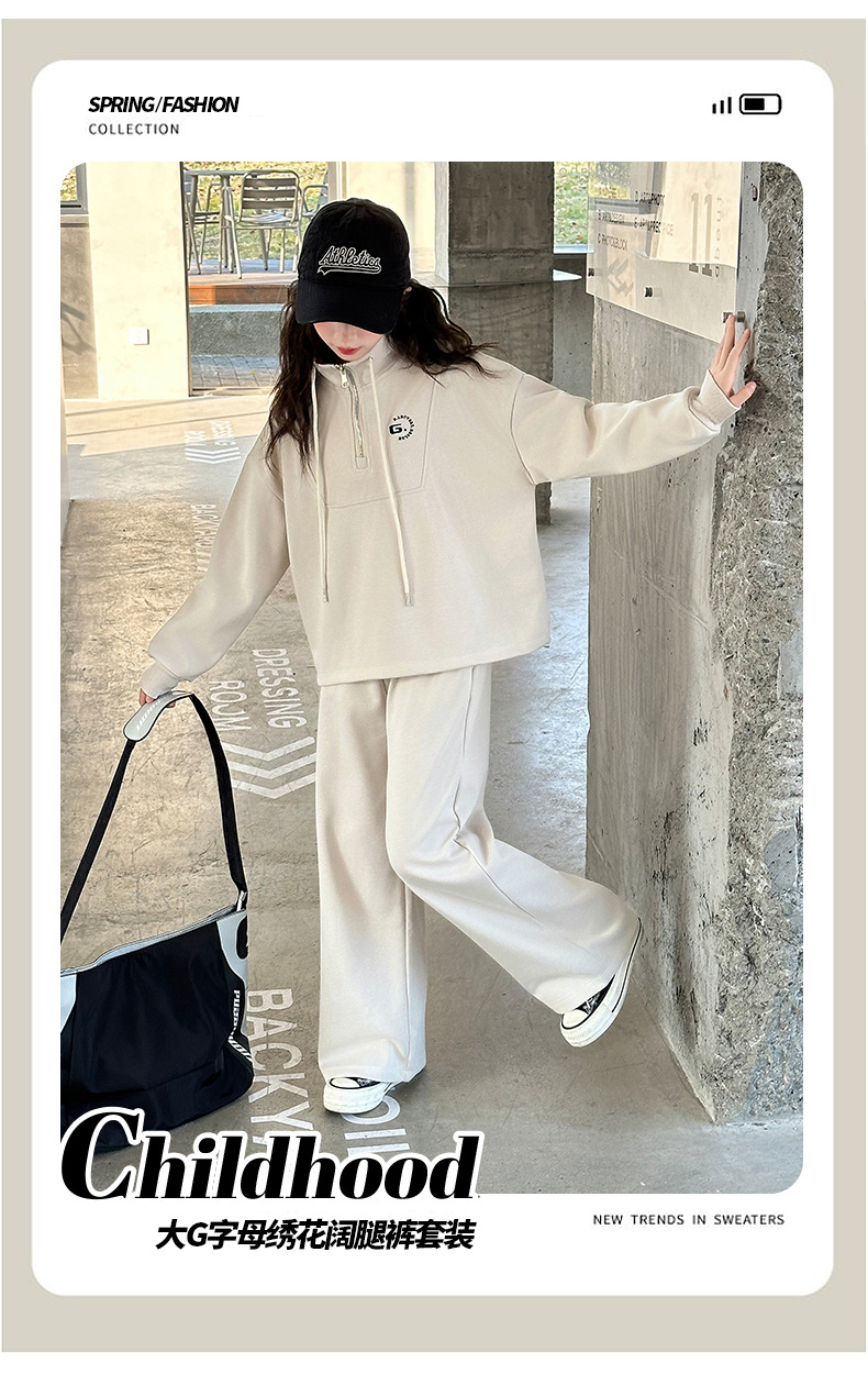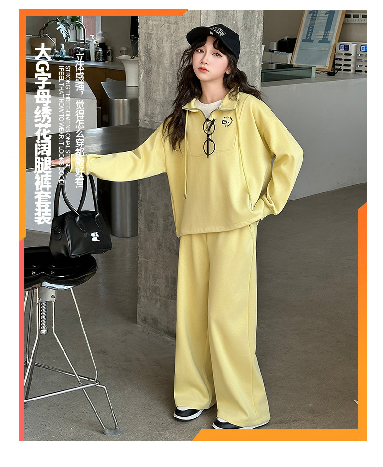 소녀 넓은 다리 바지 세트 봄과 가을 2025 새로운 한국 스타일 서양식 편지 자수 스포츠 투피스 세트