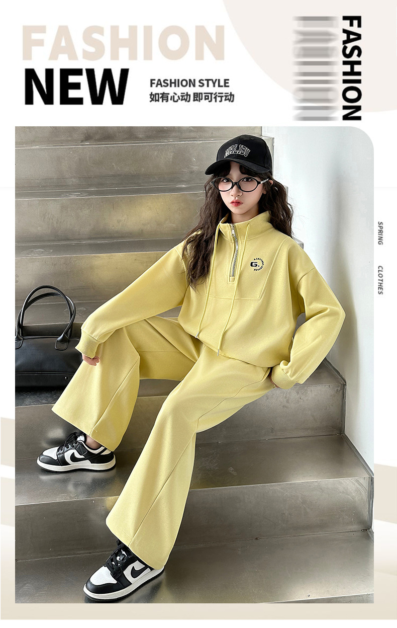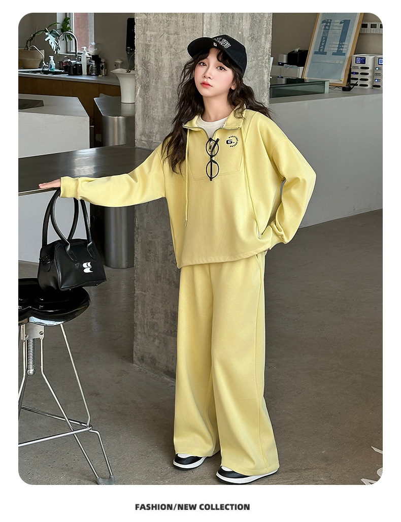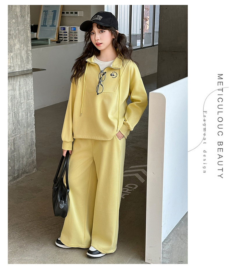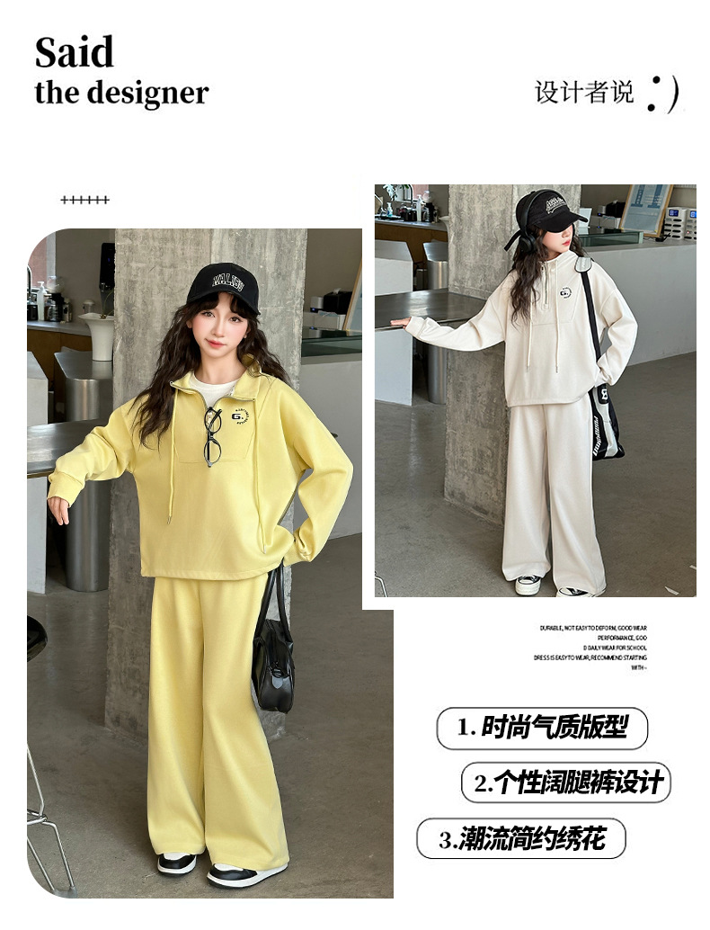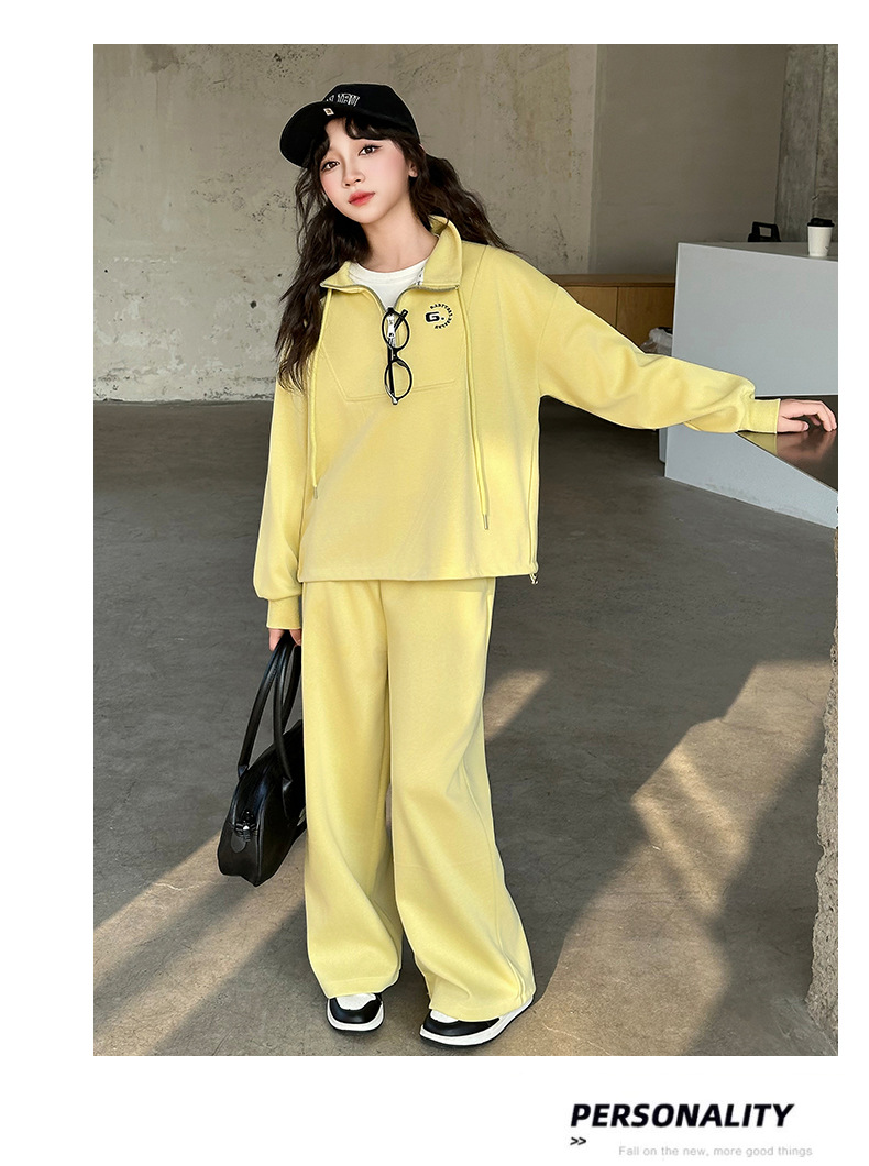 소녀 넓은 다리 바지 세트 봄과 가을 2025 새로운 한국 스타일 서양식 편지 자수 스포츠 투피스 세트