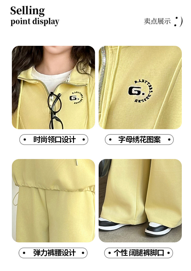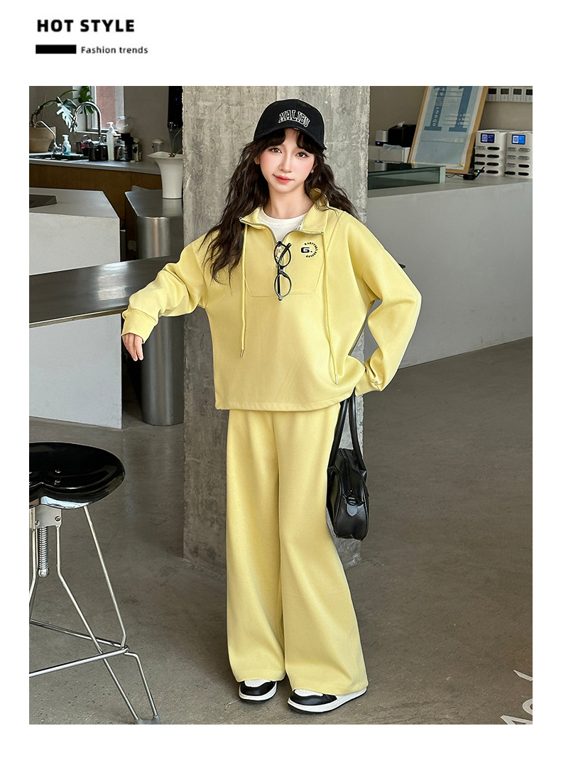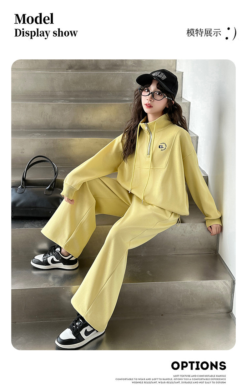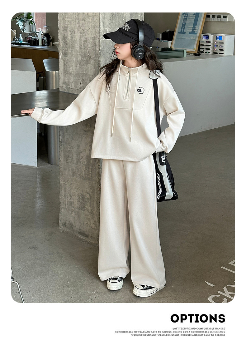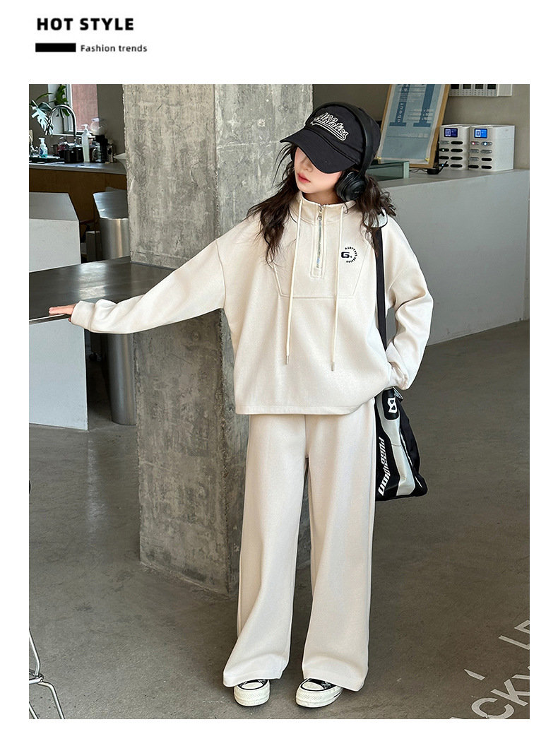 소녀 넓은 다리 바지 세트 봄과 가을 2025 새로운 한국 스타일 서양식 편지 자수 스포츠 투피스 세트