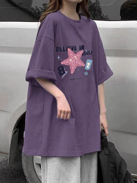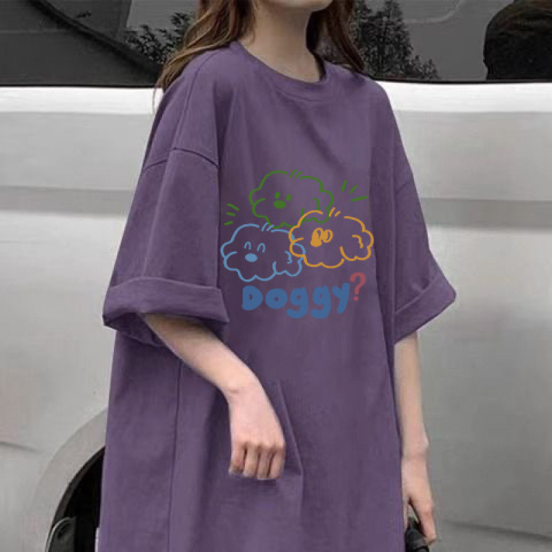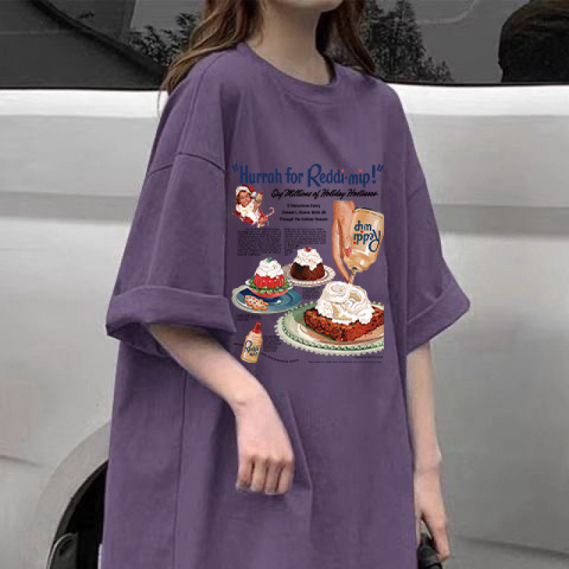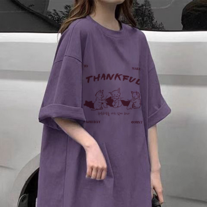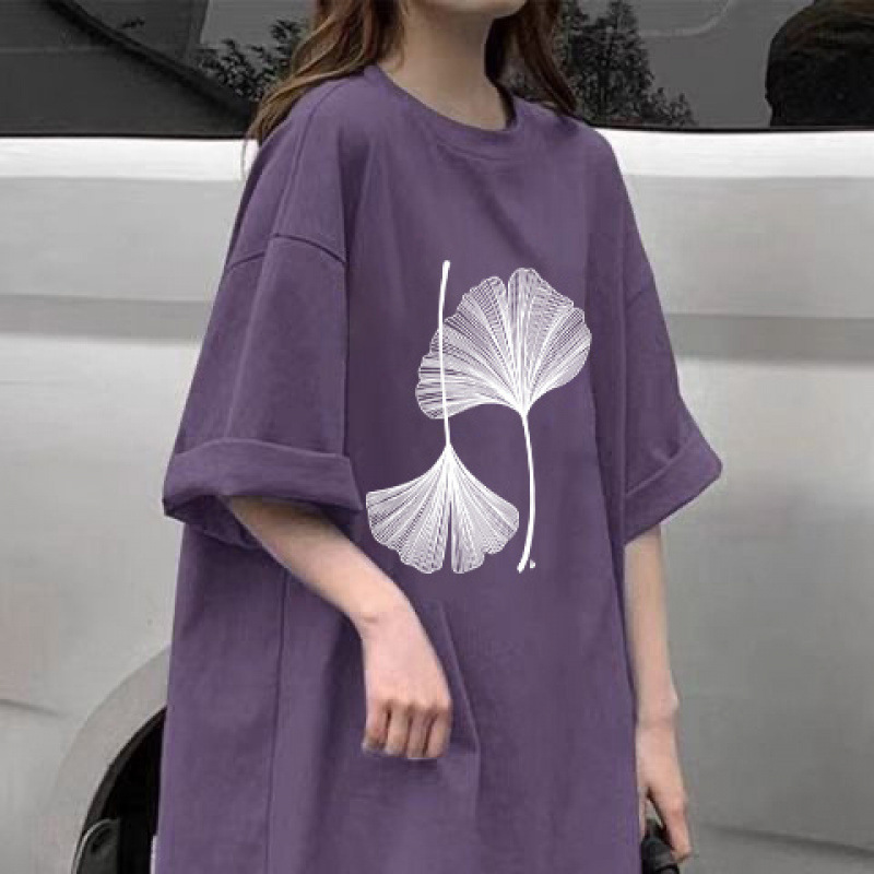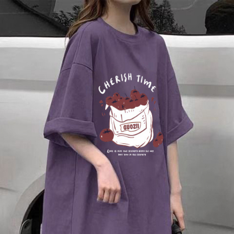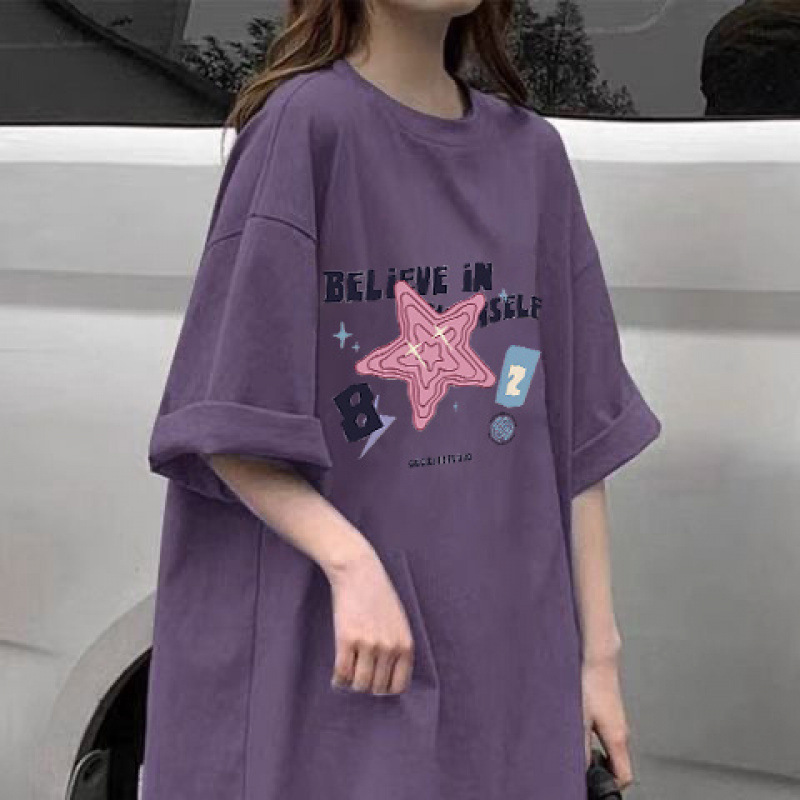 100% 코튼 여름 새로운 보라색 반팔 티셔츠 여성용 캐주얼 풀링 탑 화이트 미디엄 롱 씬스토어 가기