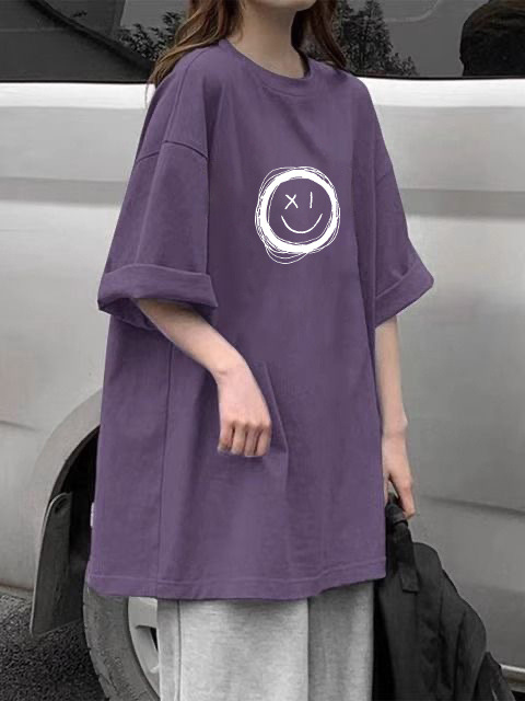 • 보라색 [흰색 낙서 둥근 웃는 얼굴] 반팔 순면