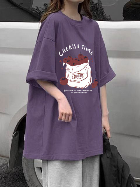 • 보라색 [GUO 화이트 과일] 반팔 순면