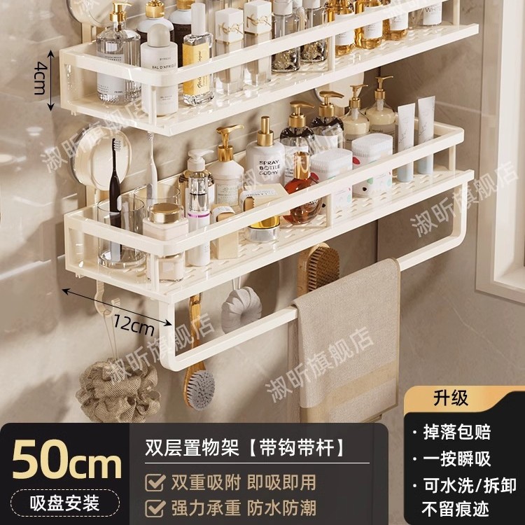 • [흡착컵] 샤오미 수납선반 두꺼운 총 밀크 화이트 50cm [후크와 막대 포함] 2겹