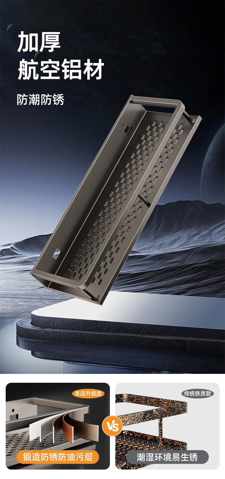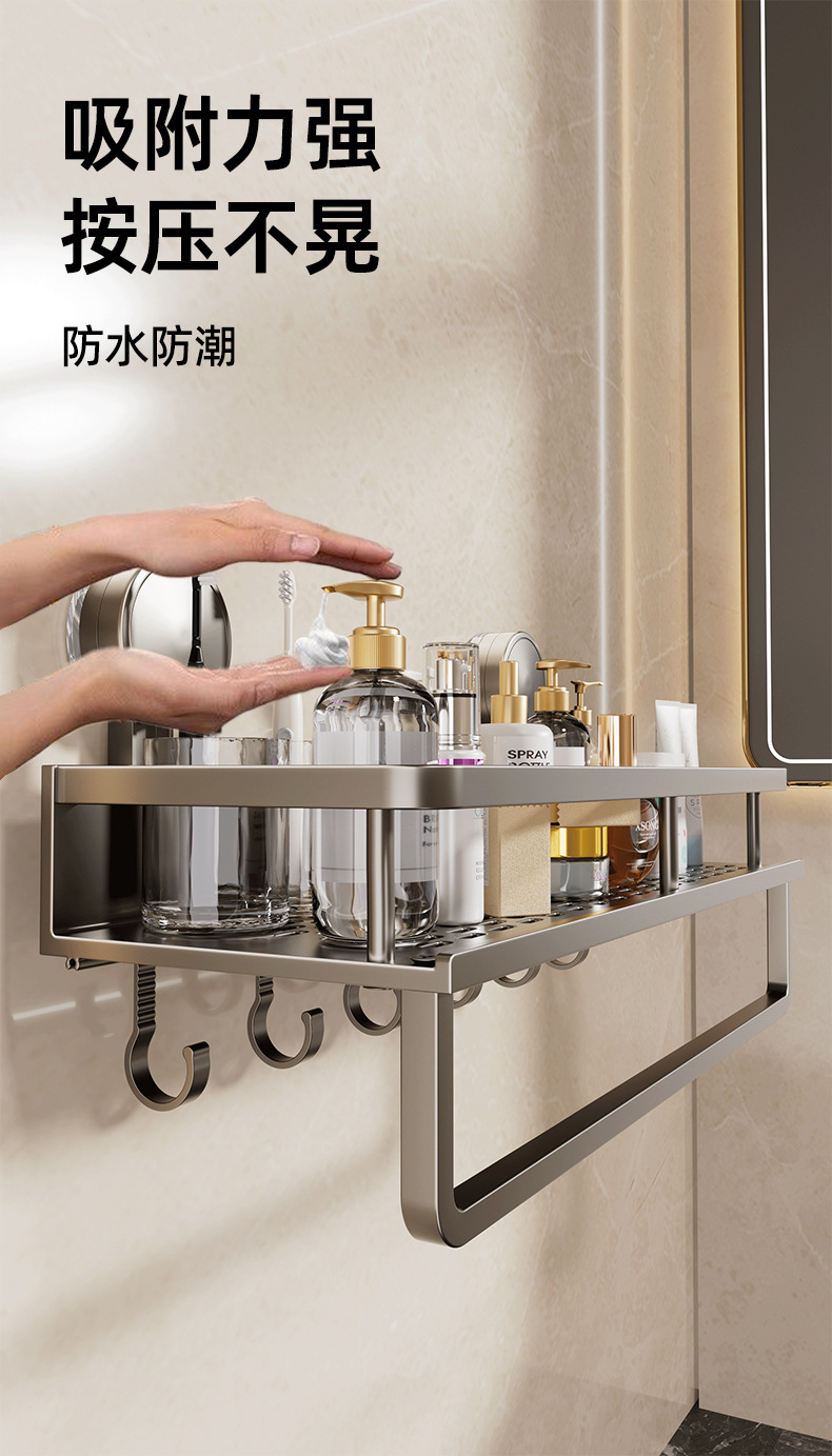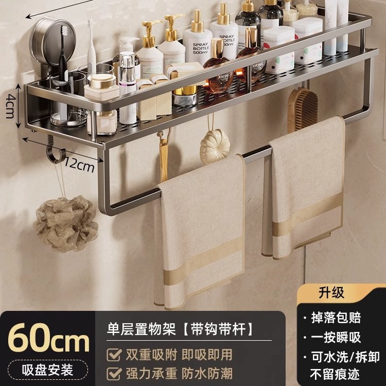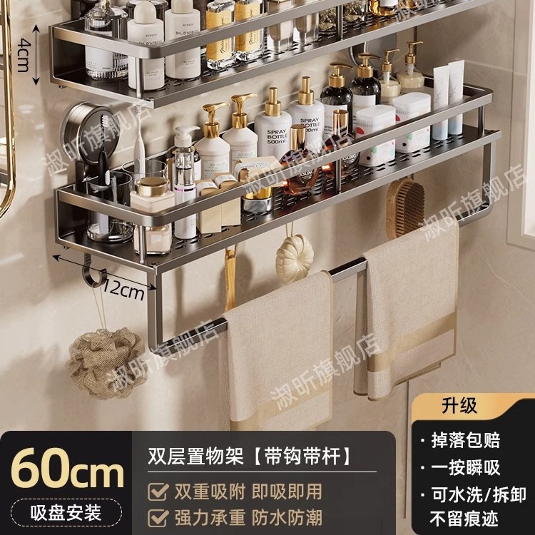 • [흡착컵] 샤오미 수납선반 두꺼운 건그레이 60cm [후크와 막대 포함] 2겹