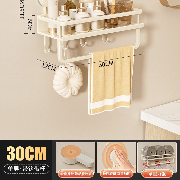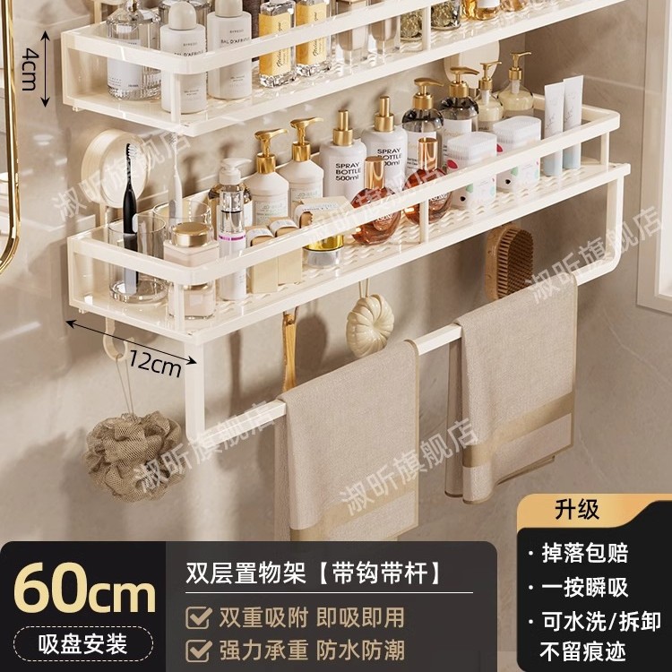 • [흡착컵] 샤오미 수납선반 두꺼운 총 밀크 화이트 60cm [후크와 막대 포함] 2겹