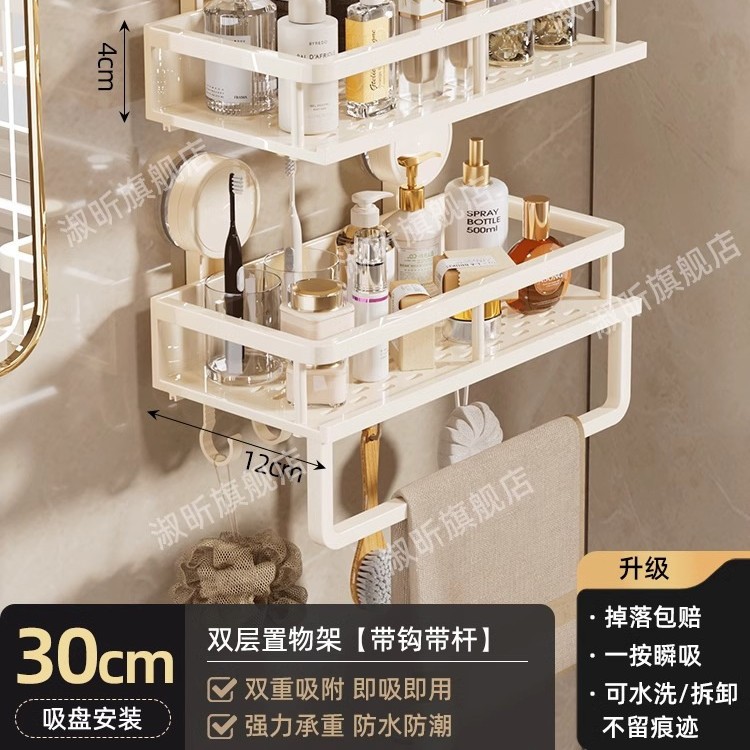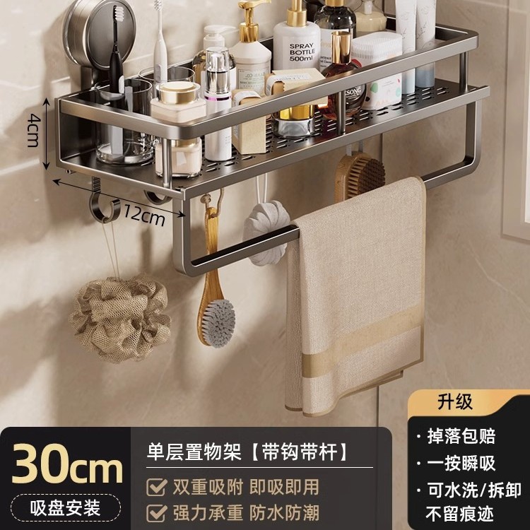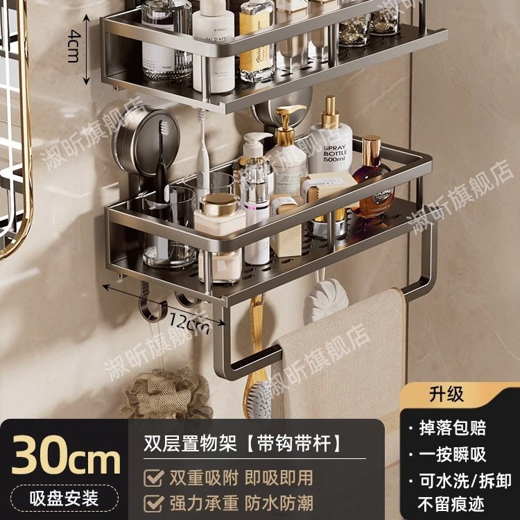 • [흡착컵] 샤오미 수납선반 두꺼운 건그레이 30cm [후크와 막대 포함] 2겹