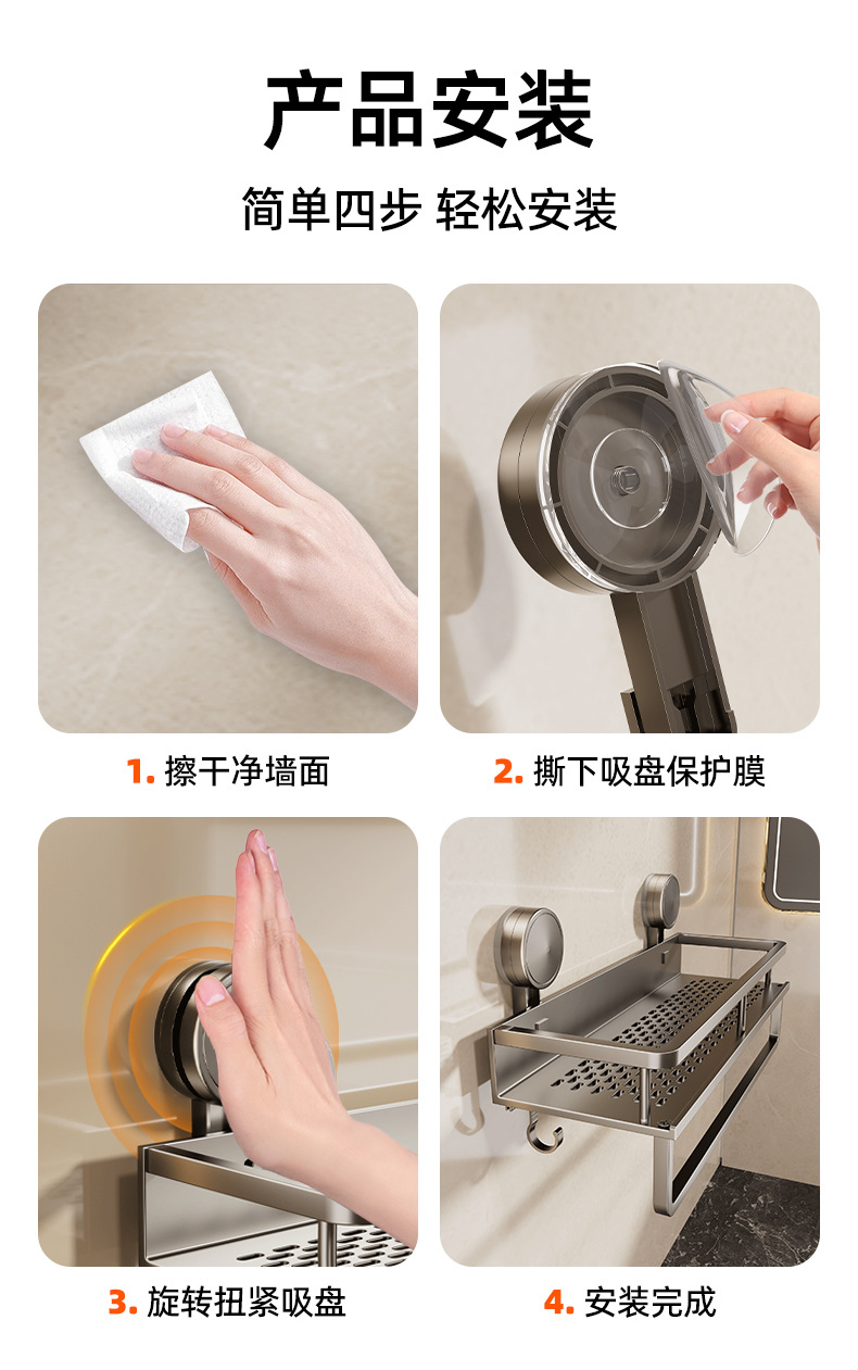 • [흡착컵] 샤오미 수납선반 두꺼운 건그레이 40cm [후크와 막대 포함] 2겹