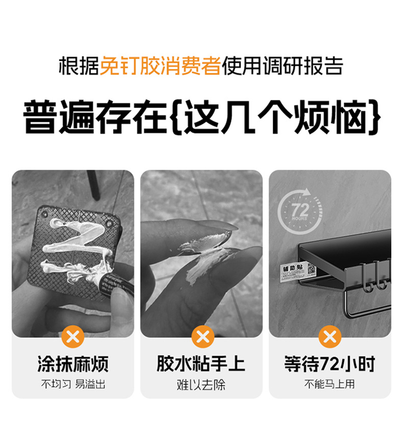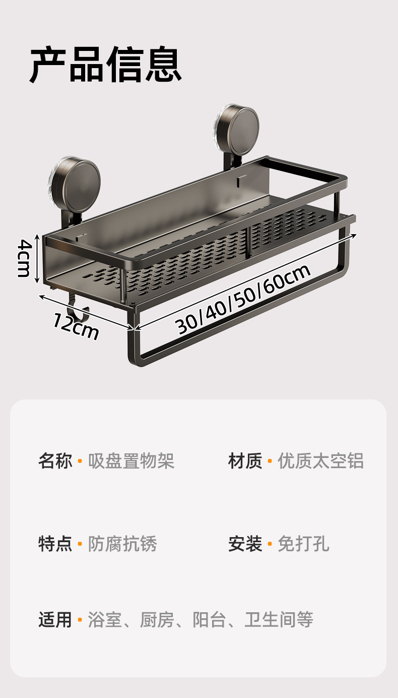 • [흡착컵] 샤오미 수납선반 두꺼운 건그레이 60cm [후크와 막대 포함]