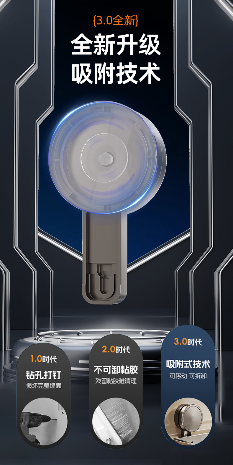 • [흡착컵] 샤오미 수납선반 두꺼운 건그레이 50cm