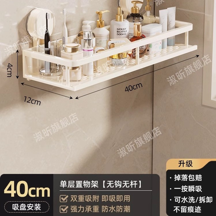 • [흡착컵] 샤오미 수납선반 두꺼워진 유백색 40cm [후크와 막대 포함]