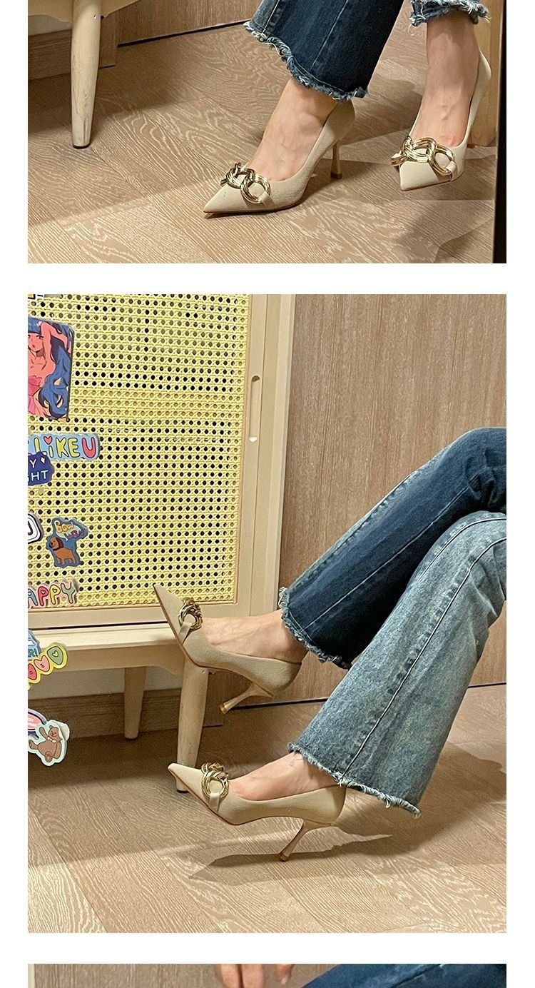 블랙 스웨이드 하이힐 2025 봄 새로운 도착 프랑스 얕은 입 포인팅 싱글 신발 우아한 통근 스틸레토 싱글 신발스토어 가기