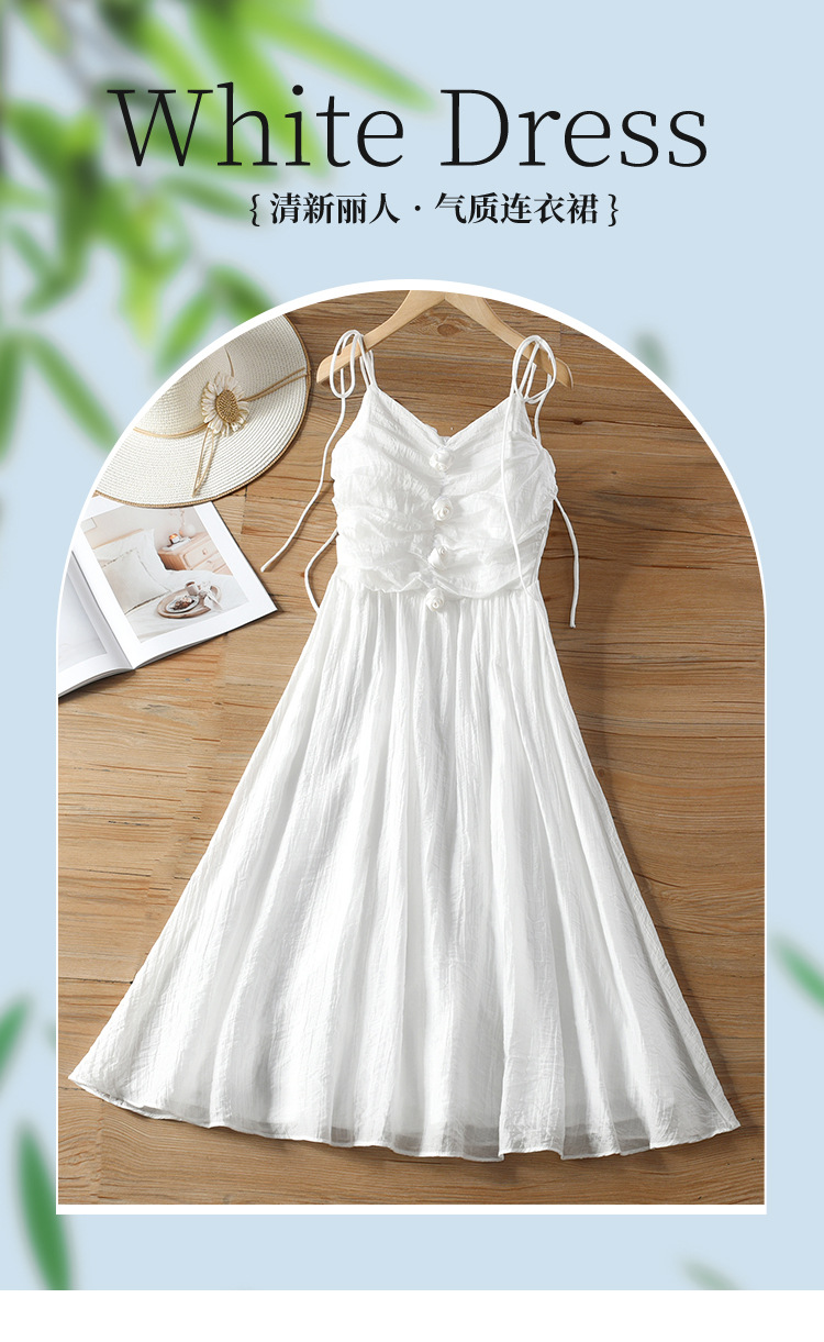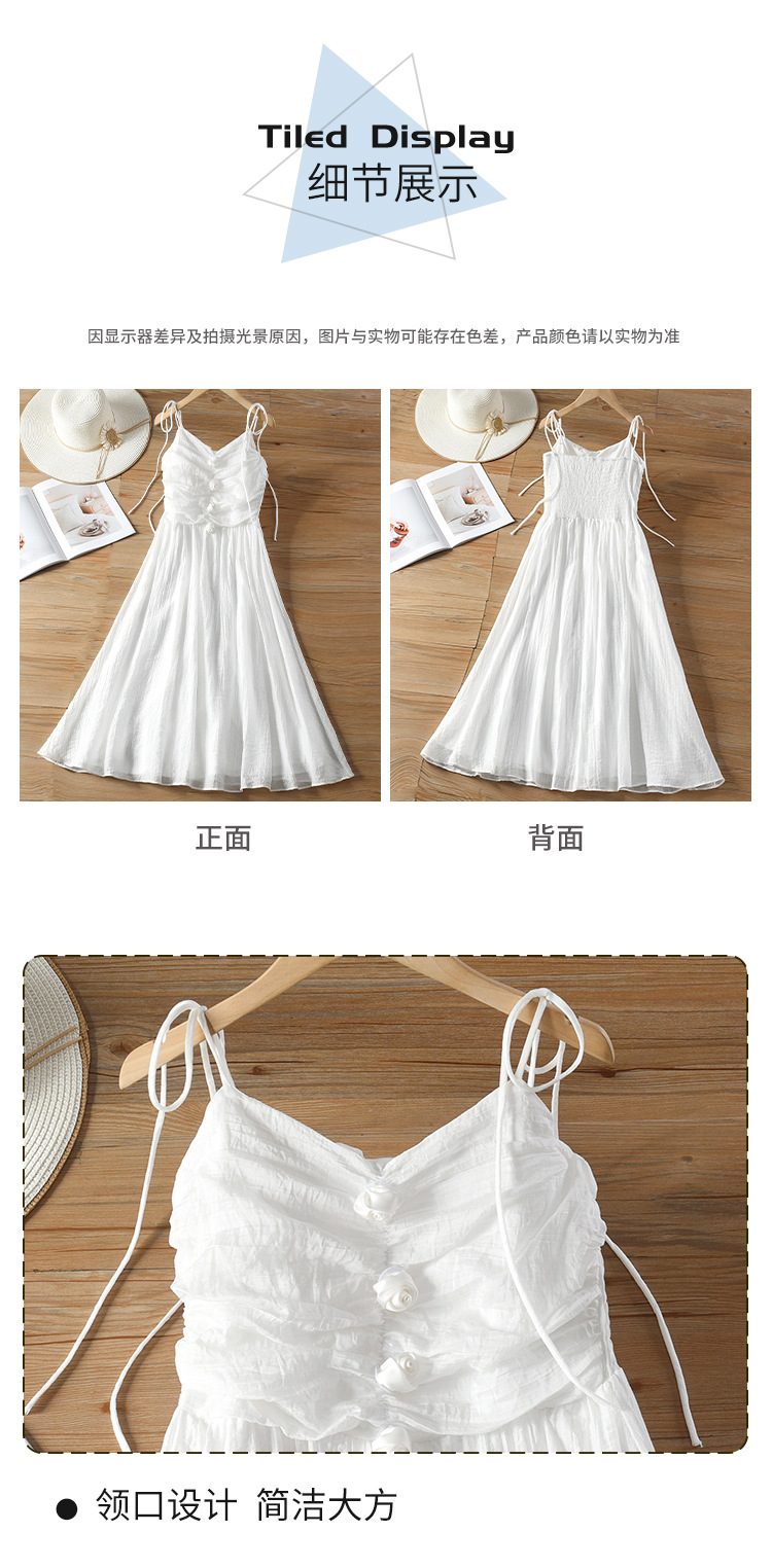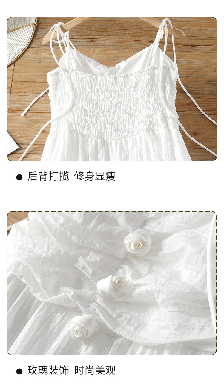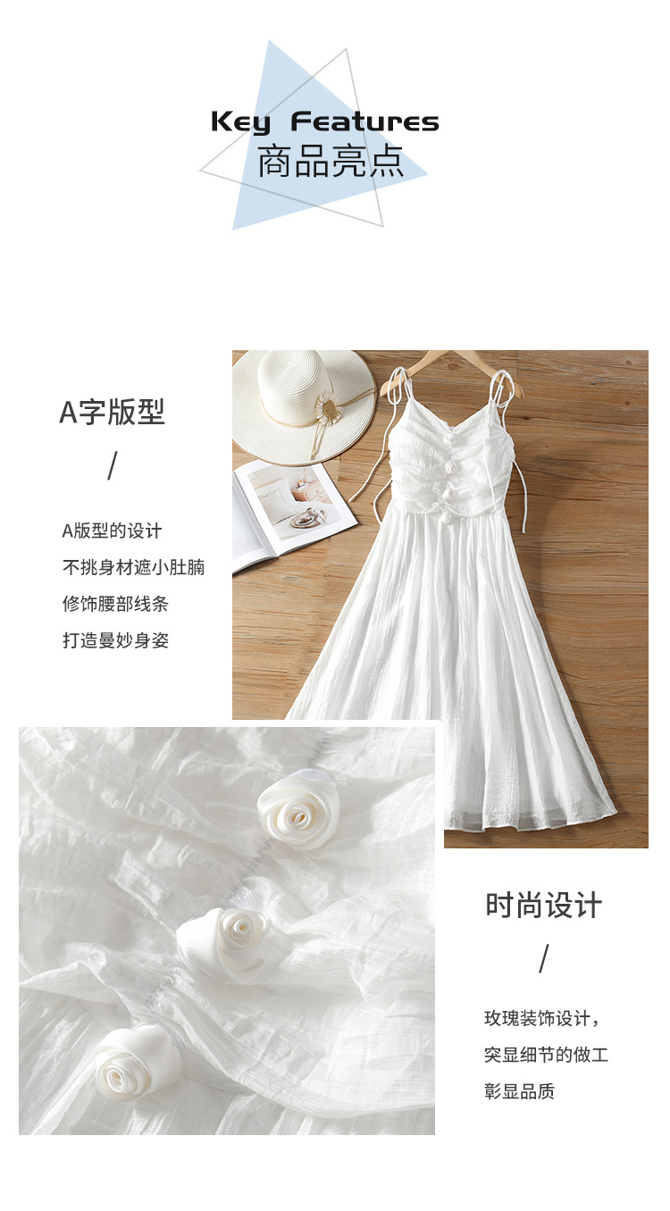 프랑스 틈새 디자인 감각 주름 장미 장식 스트랩 원피스 여성의 여름 허리 슬리밍 휴가 스트랩 원피스스토어 가기