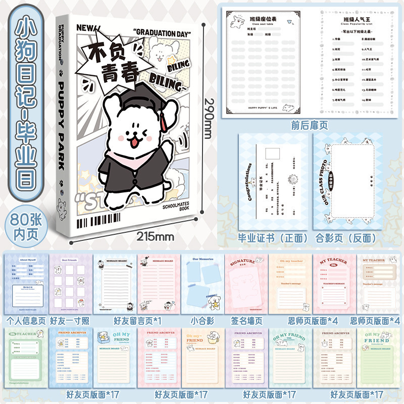 강아지 파라다이스 학생 기록 초등학교 6 학년 졸업 성장 기념 도서 새로운 느슨한 잎 학생 기록스토어 가기
