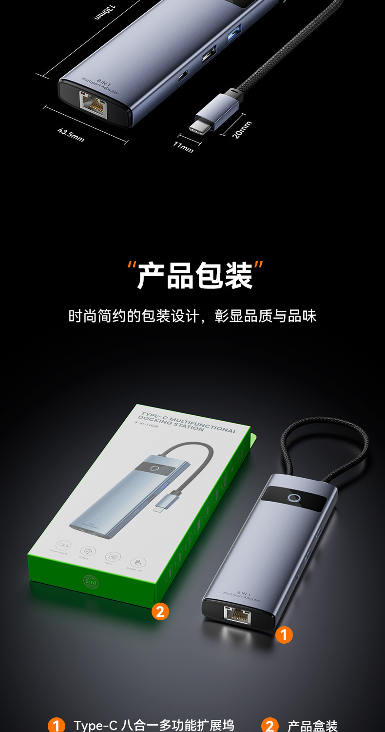 • ZX078 원클릭 화면 Type-C 도킹 스테이션 8-in-1