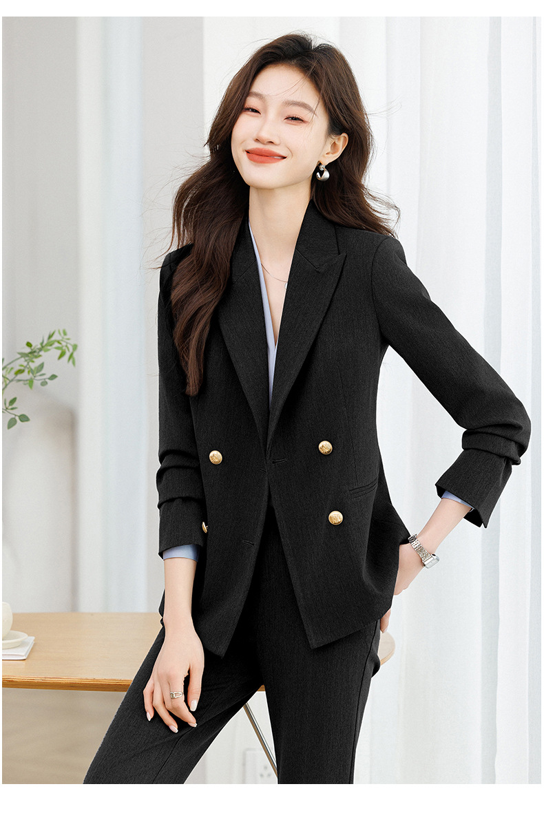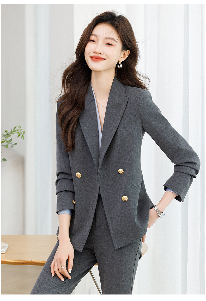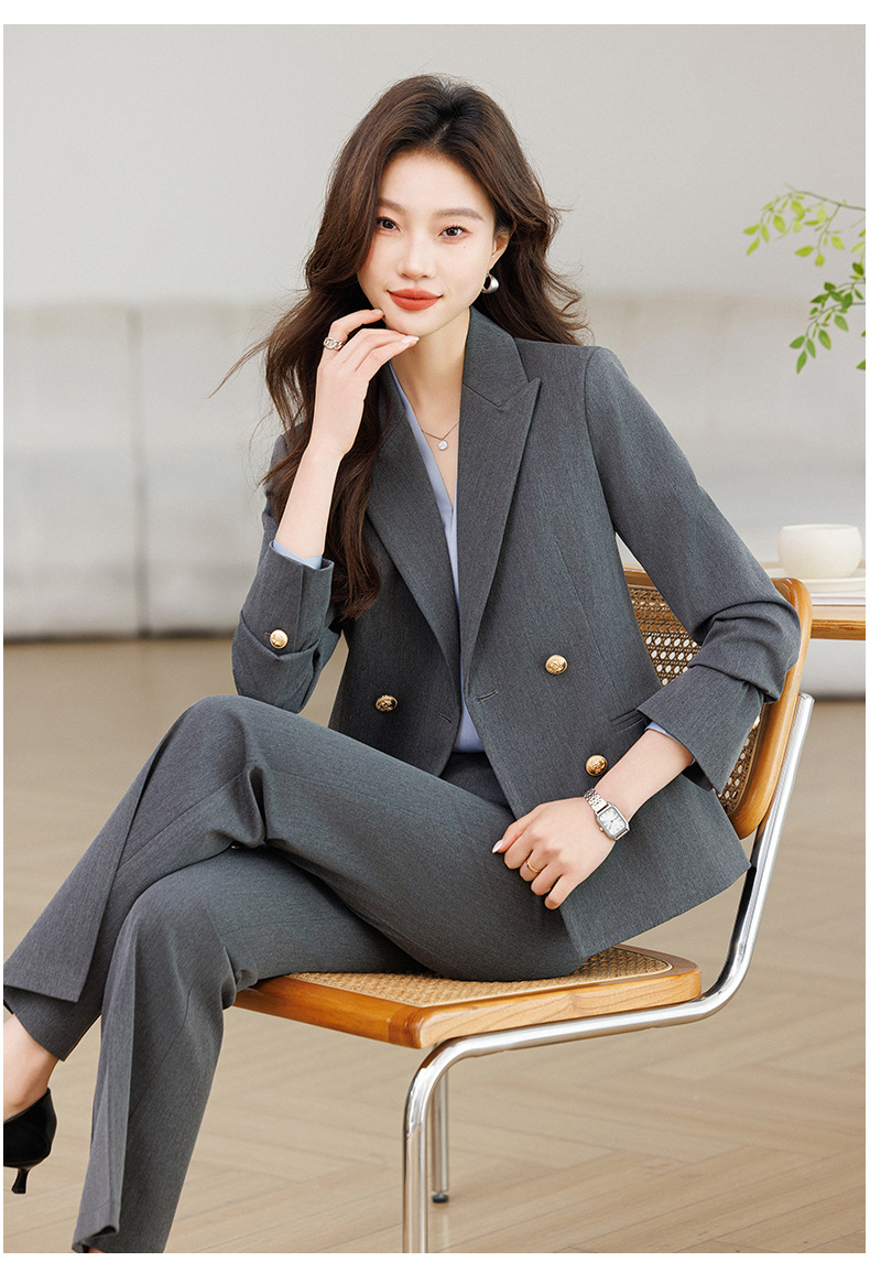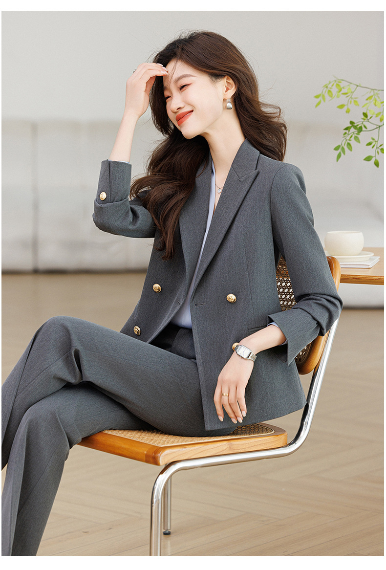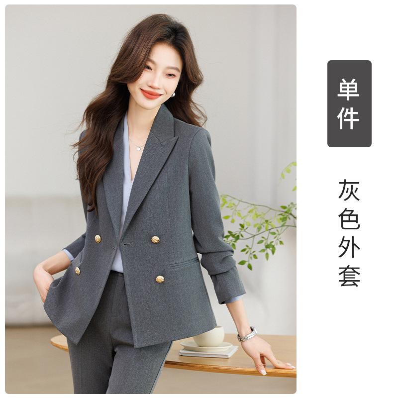 회색 세트 세트 2025 새로운 봄과 가을 여신 팬 비즈니스 여성용 더블 브레스트 세트 재킷 작업복