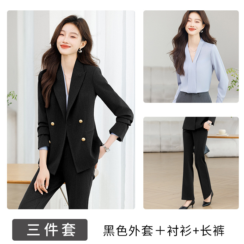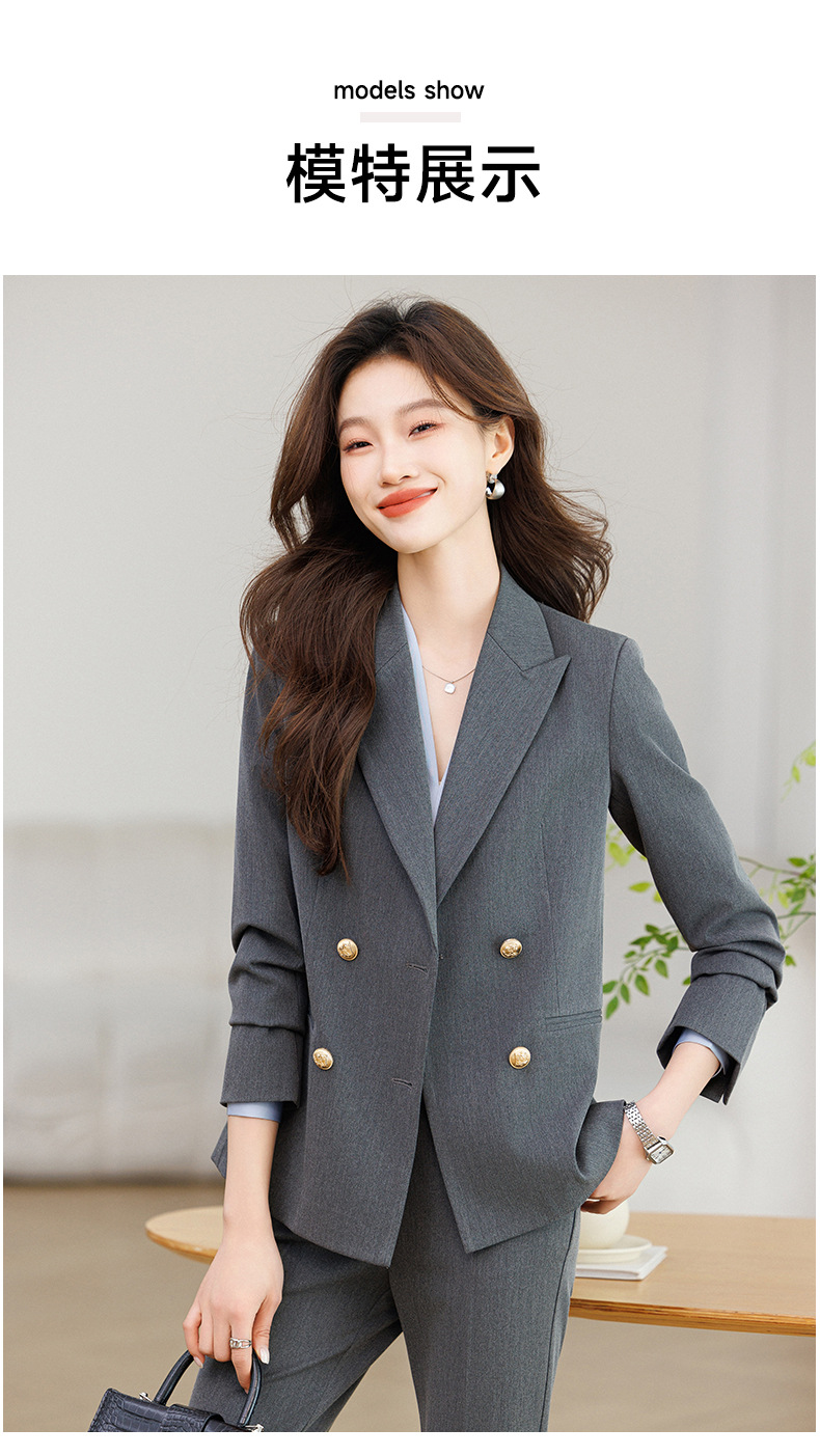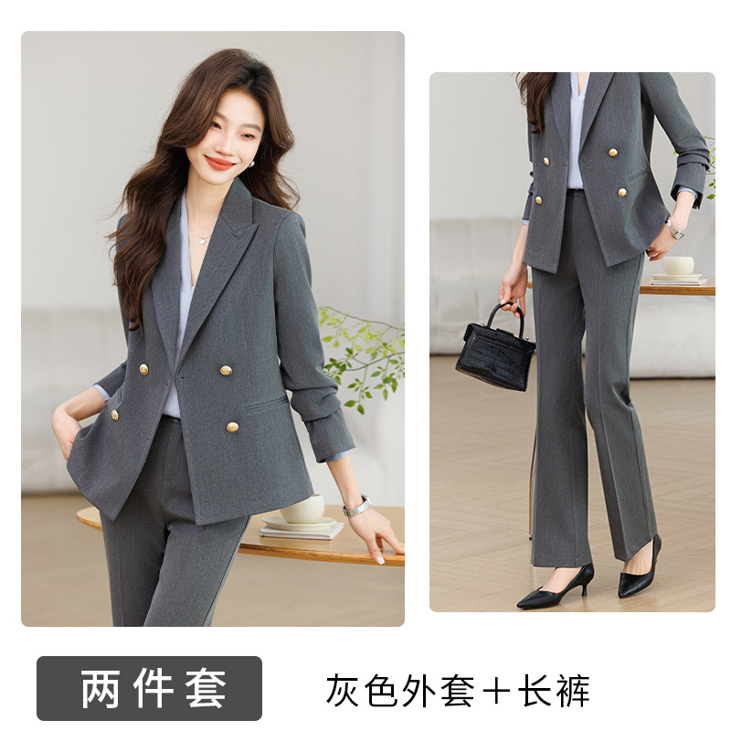 회색 세트 세트 2025 새로운 봄과 가을 여신 팬 비즈니스 여성용 더블 브레스트 세트 재킷 작업복스토어 가기