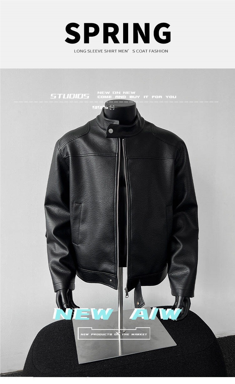 2025 신상 다용도 트렌디 봄가을 패션 가죽 재킷 HJ5787 스탠드 칼라 바이커 가죽 재킷 남성용스토어 가기